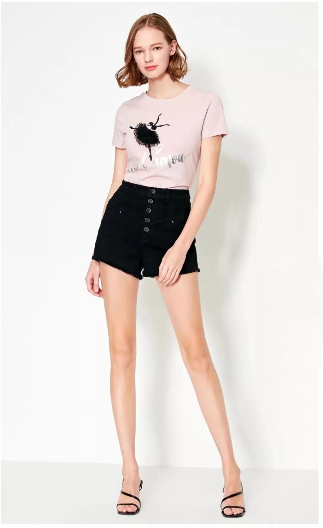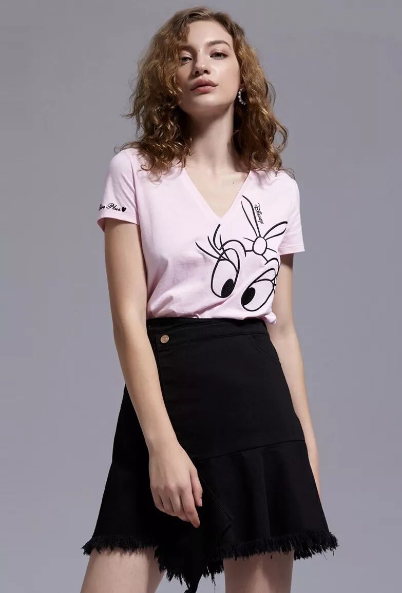 ▼简单却很有设计感的粉色T恤,满满的少女感,搭配上黑色下装让你瞬间变成少女轻熟风,美到炸,捂不住钱包!