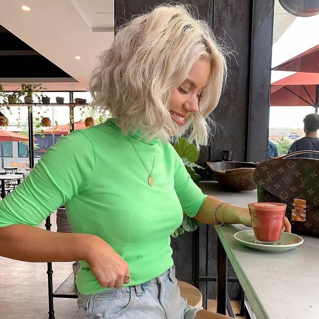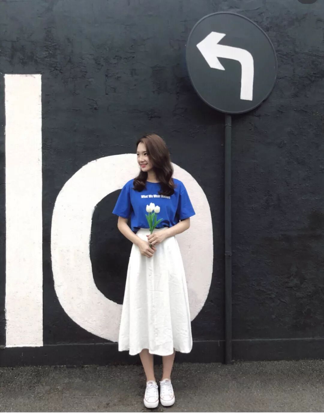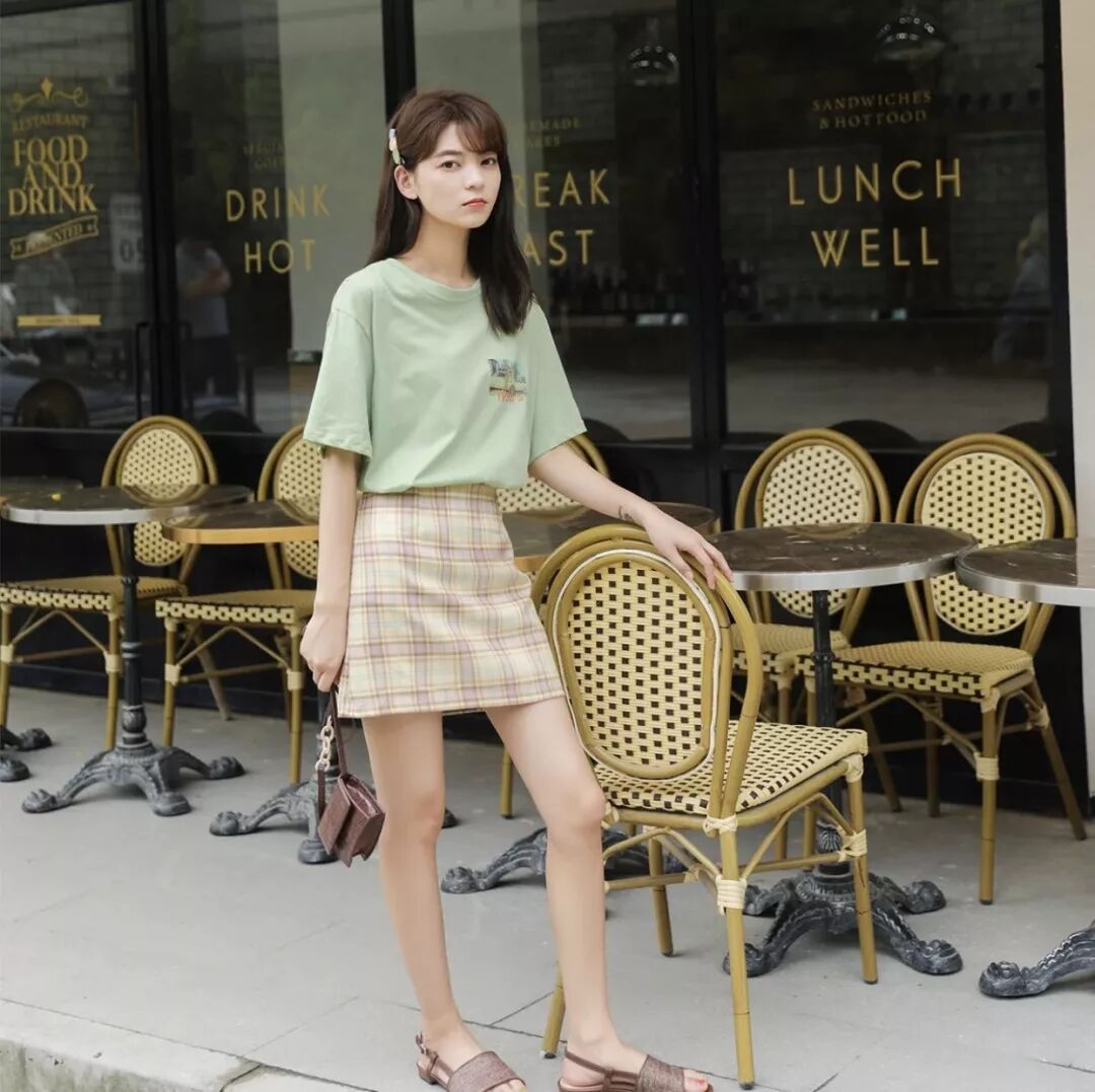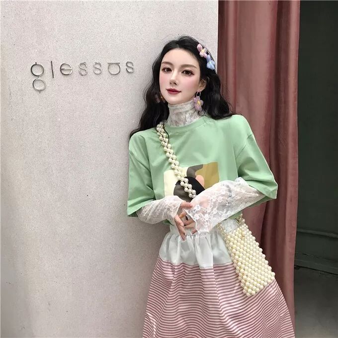 ▼薄荷绿短T搭配高腰半身裙,温柔元气,在显白力度上薄荷绿没有其他绿色力度高,白皮肤的妹子可以任性穿ok~