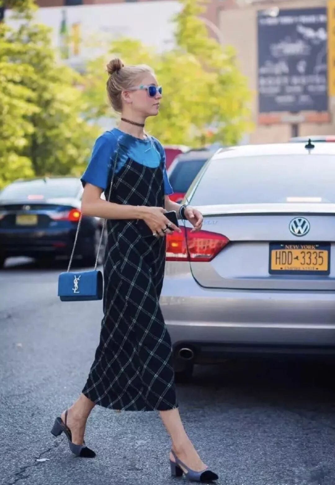 ▼清醒活力的蓝色给人无限的舒适度,格纹吊带裙让你气质更加优雅哦~