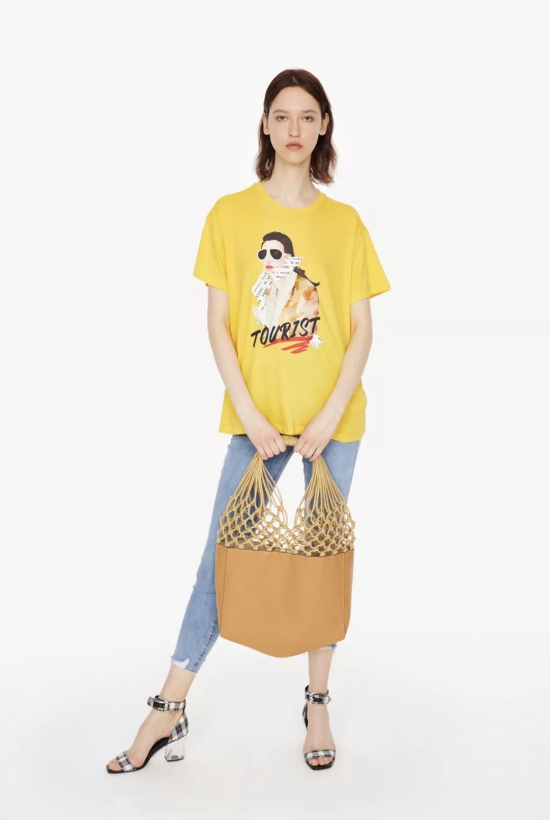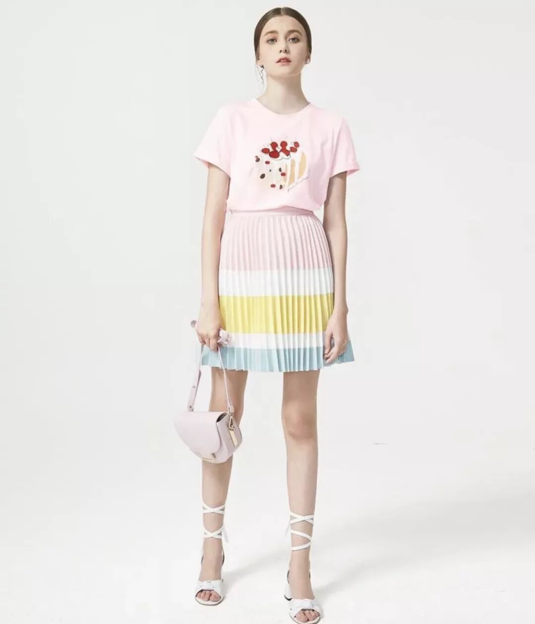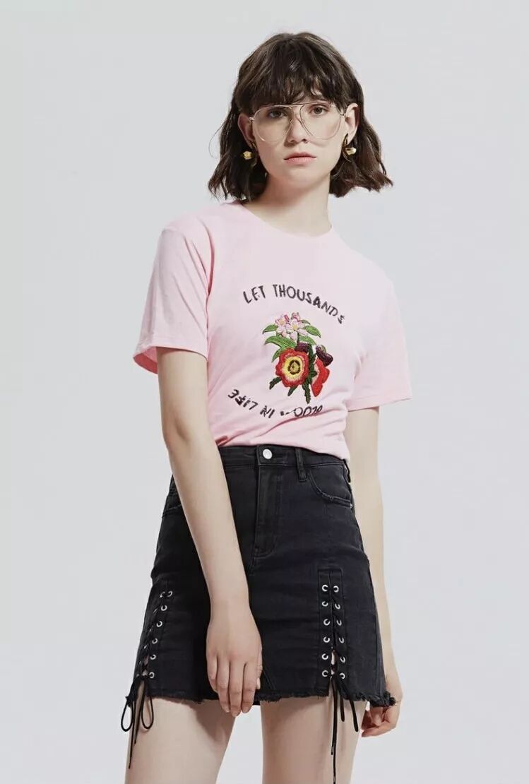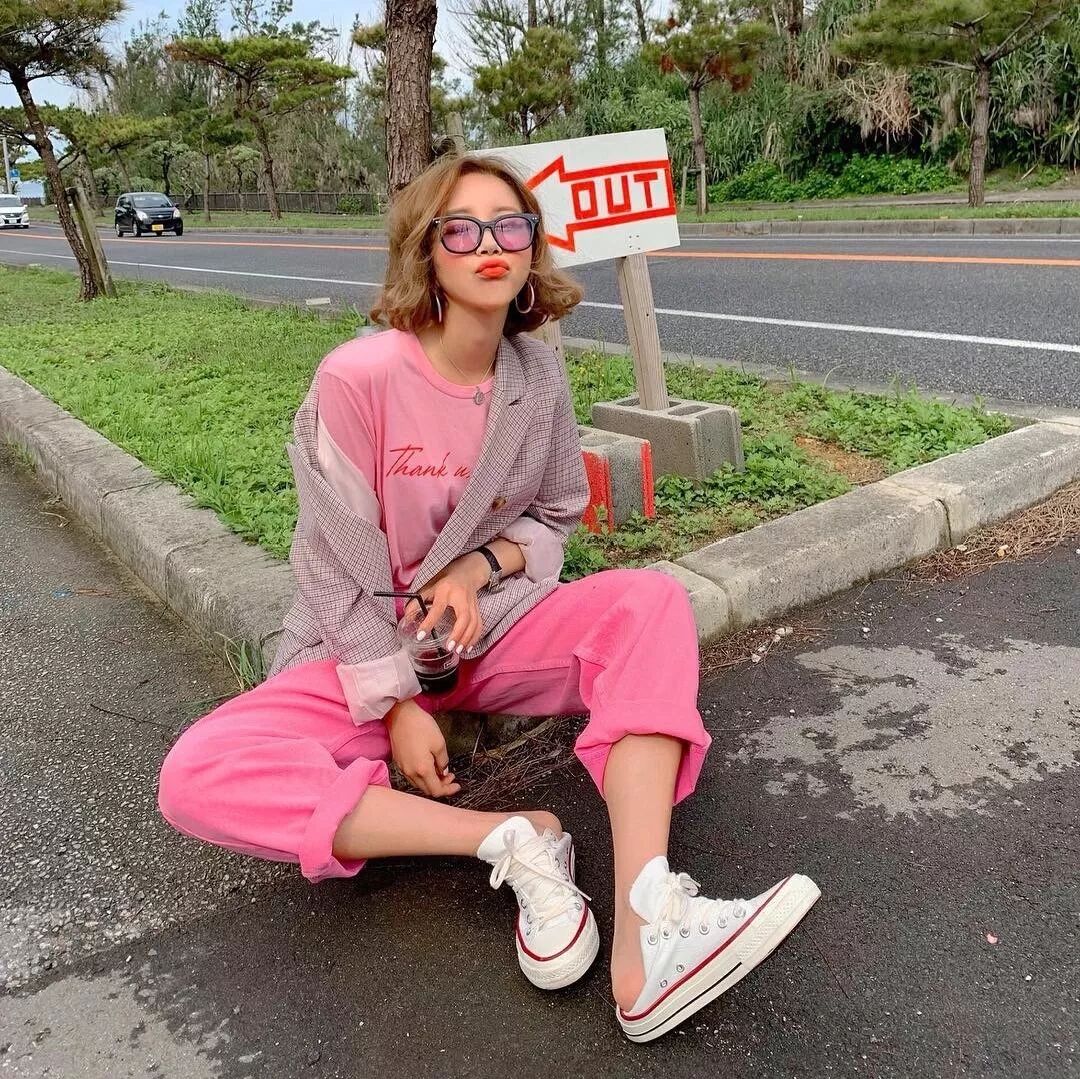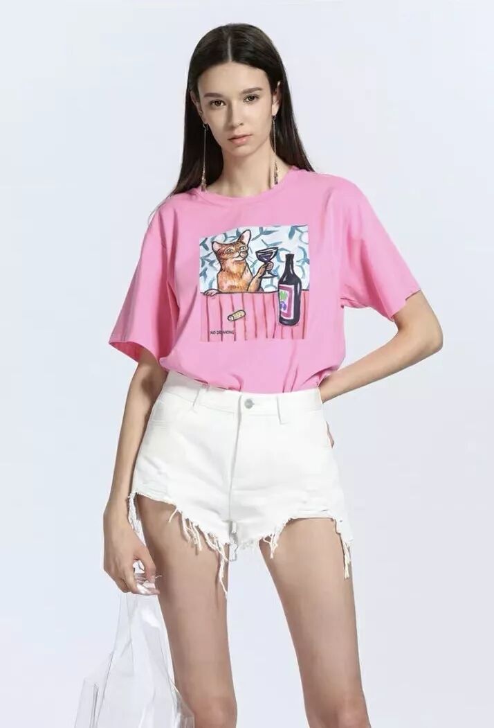 ▲“下身失踪”的粉色T恤休闲中带着俏皮,适合个性中带点又不缺少少女心的 girl~