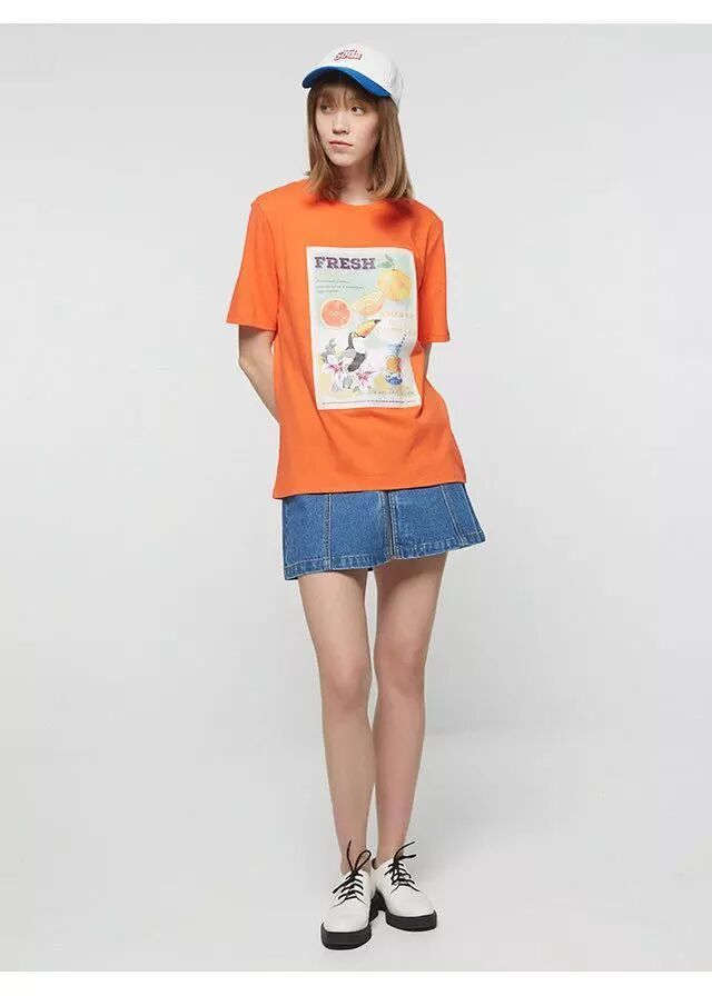 ▼虽说白色的下装搭配起来毫无压力,但是显眼的橙色T恤补色才是最抢眼、最明亮的look~,整个一套穿起来才是最好的CP结合,给人一种元气少女的感觉~