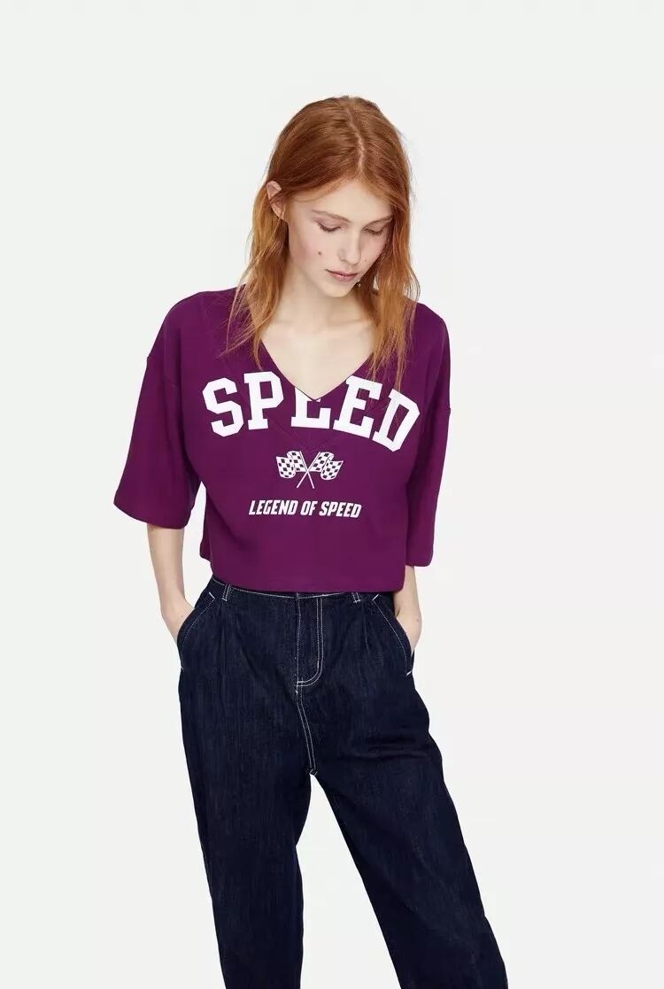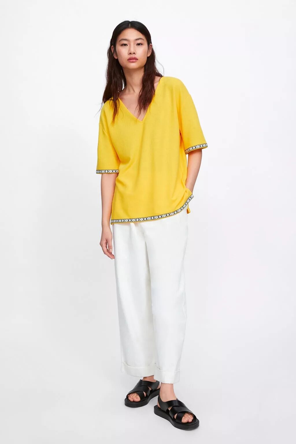 | ZARA 新款黄色撞色条纹V领 T恤 | |