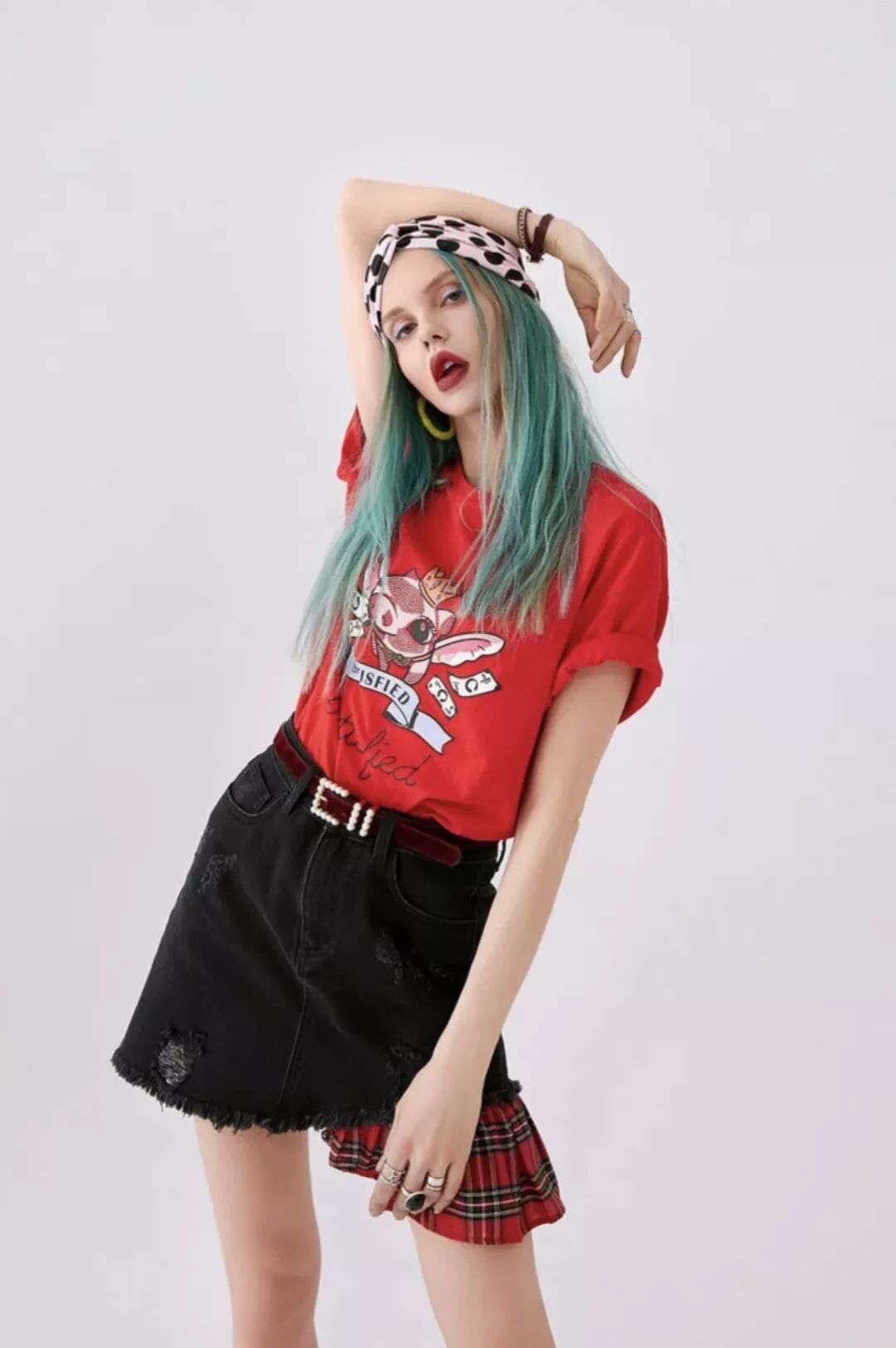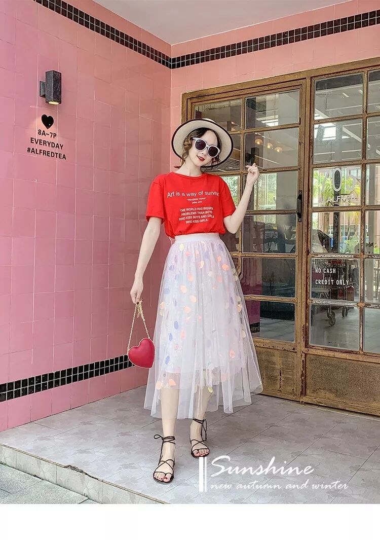 ▼对于女孩子来说,网纱裙的轻盈材质有着仙气,搭配红色T恤,很显身材,清爽活泼,同时是最嗲的搭配哦~