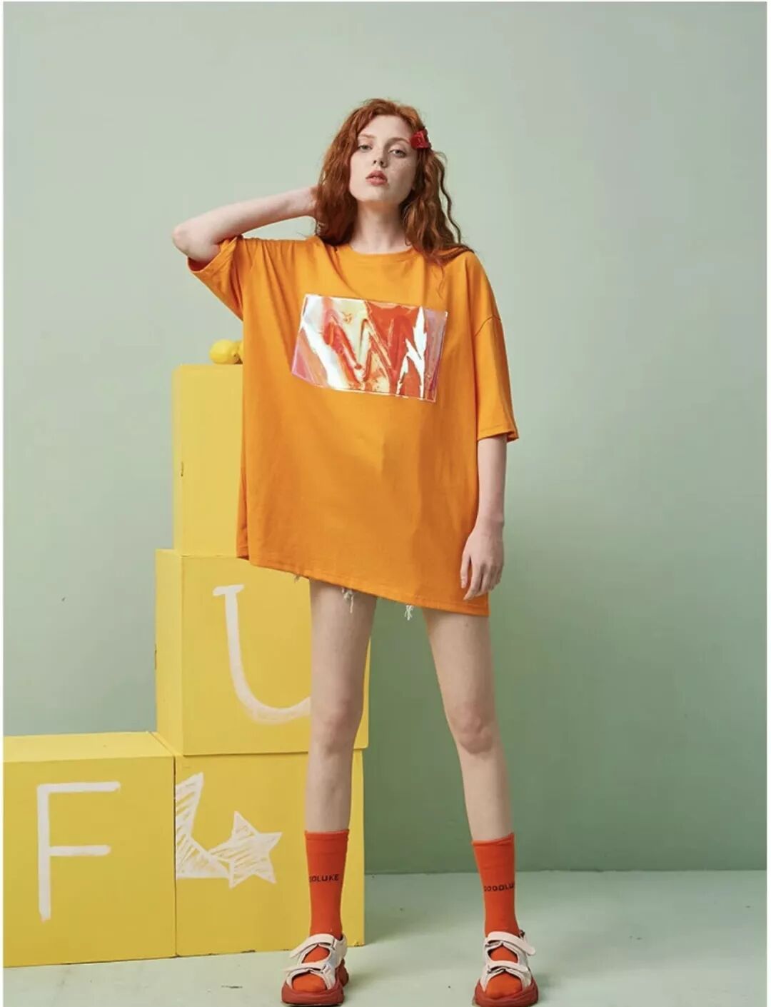 夏旬一抹清爽橙,一款橙色短T,特别适合夏天滴颜色,像夏日里的一杯橙子汽水,亮眼超显白!!太好看辣!▼