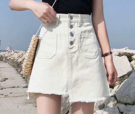 ▼海蓝色搭配白色的高腰裙,简直就是温柔文静的配色,给人干干净净的初恋般的感觉,气质女孩选这个~