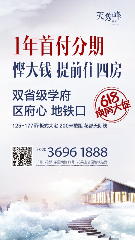 【场地介绍】路劲天隽峰位于花都中心,地铁9号线花果山地铁站旁,交通便利。双省级名校就在家门口,花都一幼(天隽峰分园)、新华五小(宝华校区),书香氛围浓郁。下楼就是8100㎡风情商业街,5分钟直达6大shoping mall,满足不同生长阶段家庭的生活!是繁华城心里,罕有7万㎡大型台地谧境花园住区。