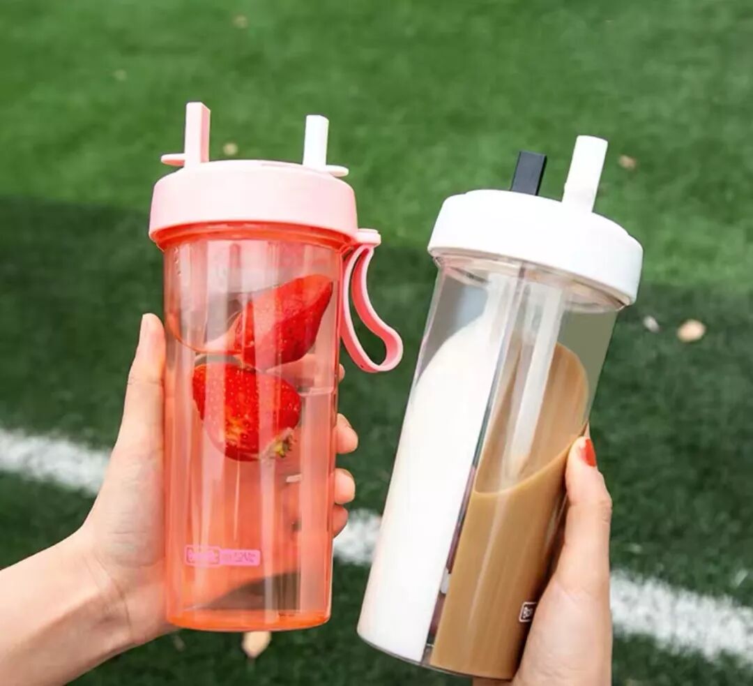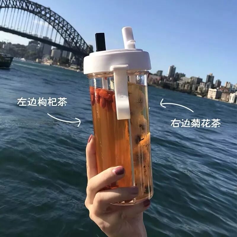 这款水杯可以说是选择困难患者的福音了~一个水杯双饮两用,杯子的内部是分隔的,两根吸管可以同时装自己想喝的两种饮料哦~
