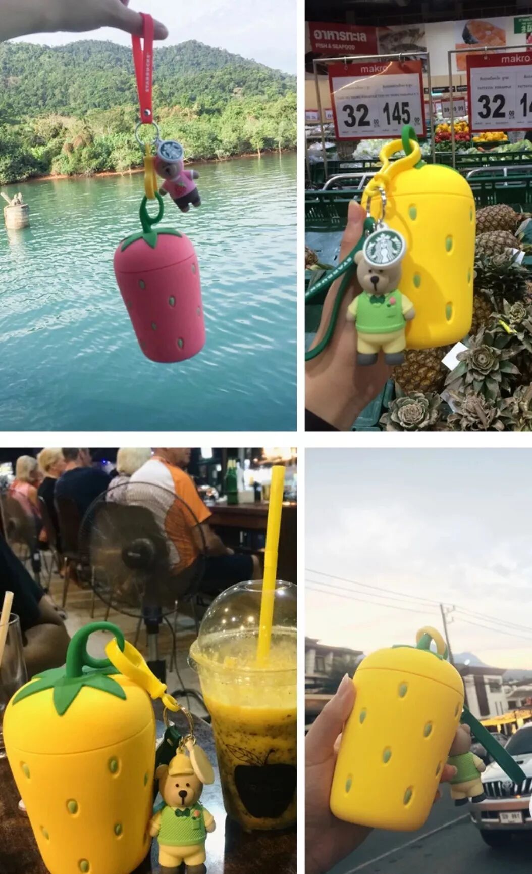 这个小草莓的造型好Q啊,是心动的感觉!每个小女孩都会喜欢的,连我这个阿姨也被深深吸引了!随水杯赠送玩偶吊坠也很可爱哦~