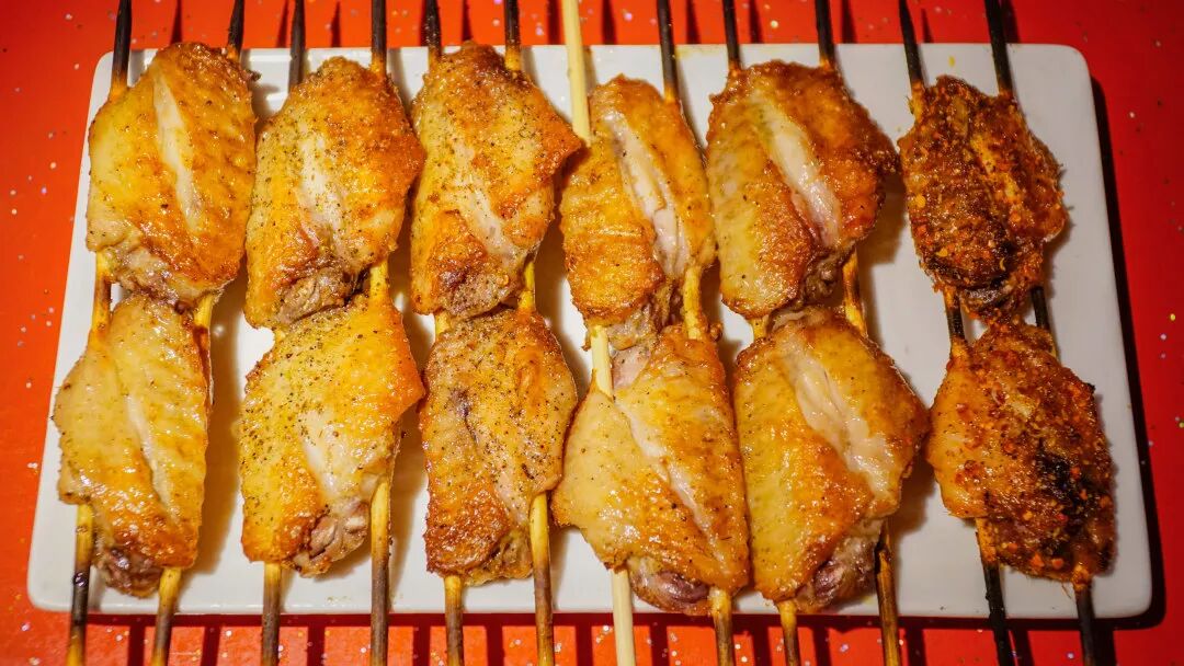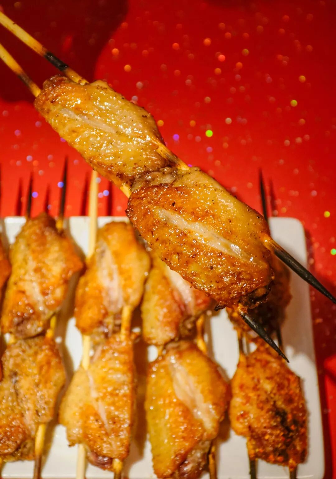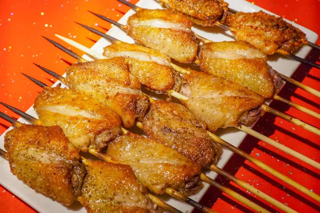 在肉和牙齿的厮磨之间,我意犹未尽地放下竹签,才发现已经吃完最后一根了。