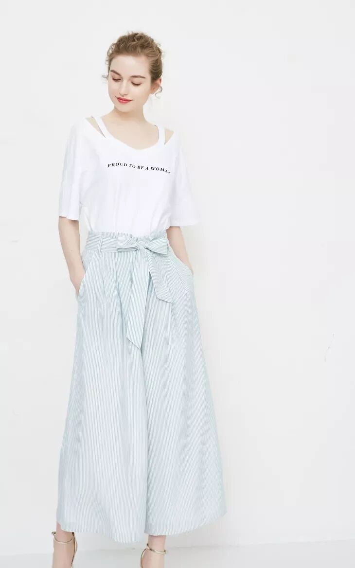 对于髂骨宽的妹子,Purple也很推荐大家试试今年比较流行的压褶阔腿裤,舒适丝滑的垂感、清凉的面料,非常适合炎热的夏天食用,竖条的压褶决定了它强大的显瘦基因,即使是亮色系也完全没在怕的!还能帮你掩盖小肚腩的问题哦!