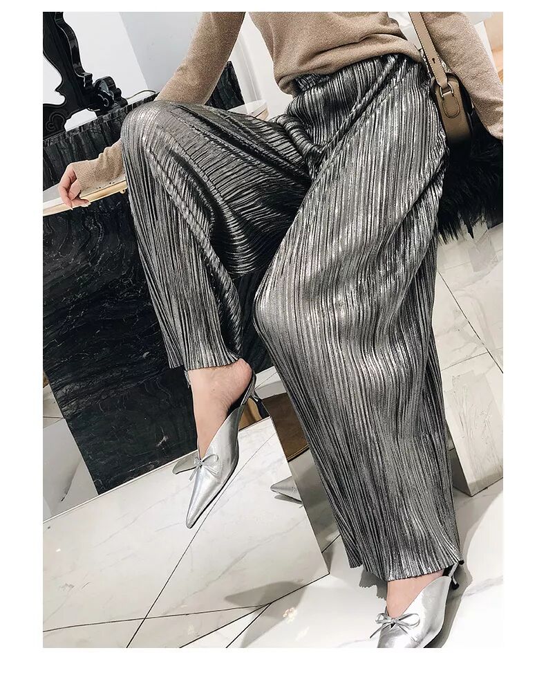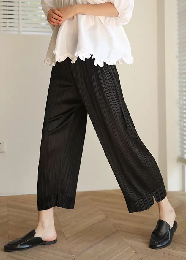 压褶阔腿裤