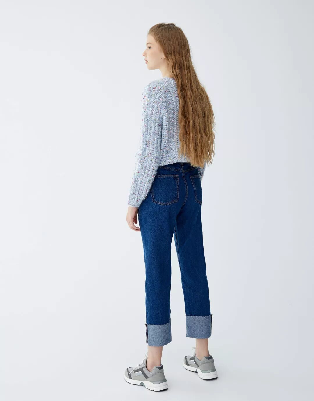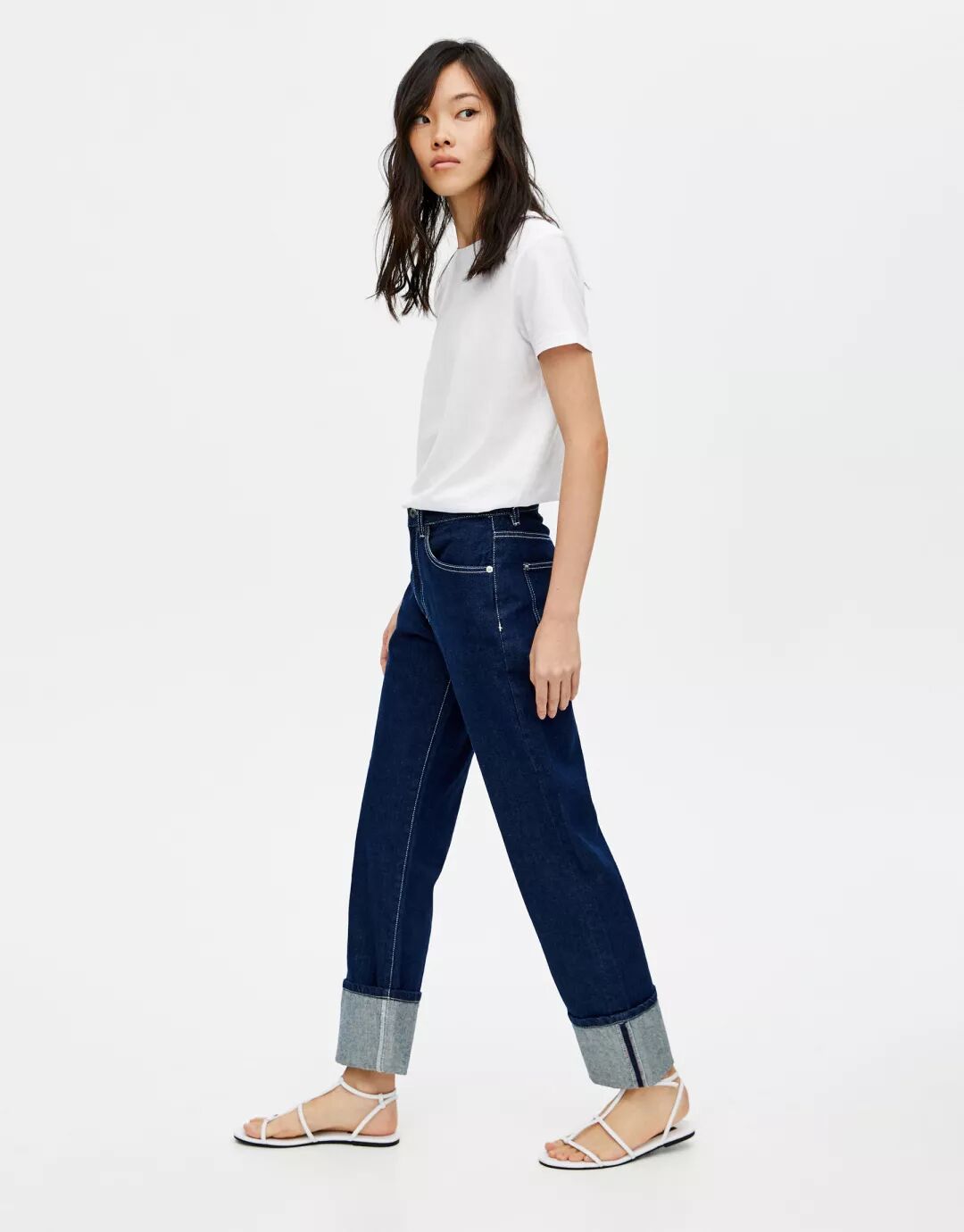 PULL&BEAR 卷边蓝色直筒牛仔裤