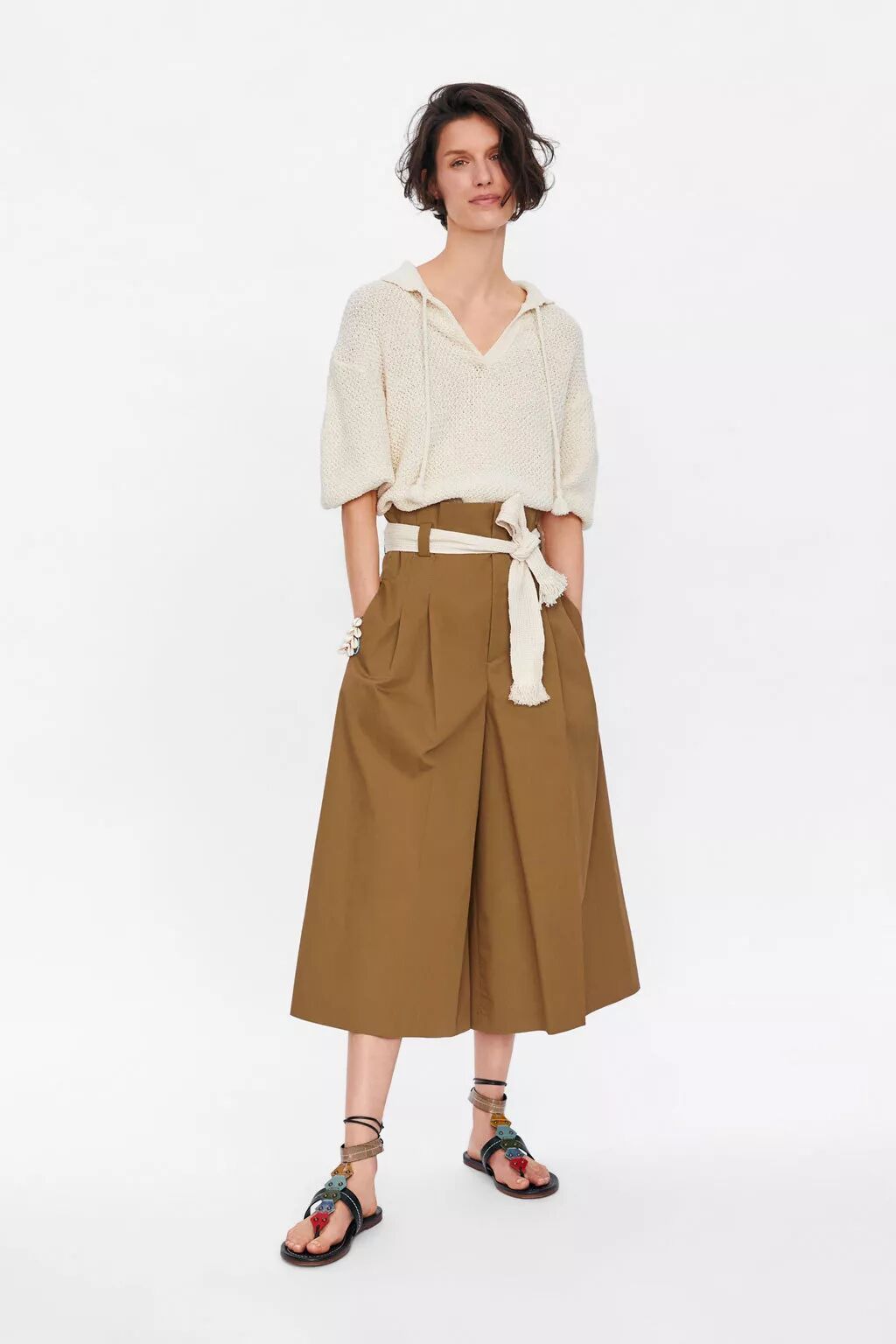 ZARA 拼接腰带阔腿裤