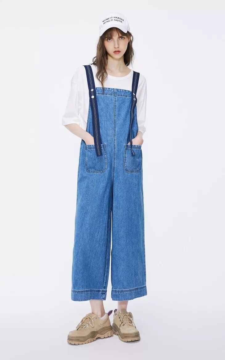 阔腿牛仔背带裤