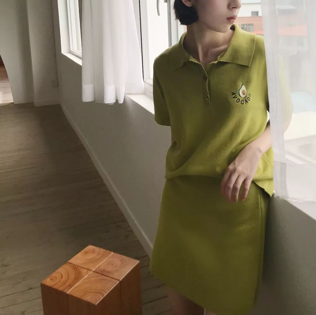 更加大胆的宝宝不妨试试牛油果绿同色系的搭配,同色系套装在夏天最受欢迎了,POLO款式近几年也特别流行,搭配同色系的牛油果绿,很高级了!
