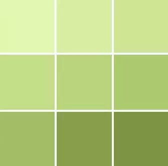 从浅的草绿色到深的亮绿色,都属于牛油果绿的范畴。它既混合了灰色调,又有暖调的奶黄色。给人柔和舒服的视觉效果~