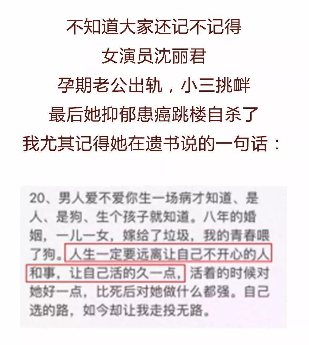 女人的确要爱自己,别人才会爱你!不要把自己逼入绝境,既然都不相爱了,何必维持呢?放大家一条生路,也放自己一条生路,尽管目前是陷入困境,但总会雨过天晴的,女儿大了也会想明白母亲当时的做法,很多癌症都是抑郁造成的,人一生总要为自己活一次吧。