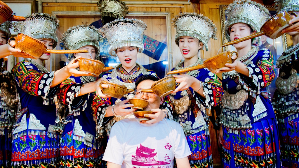 苗寨去过不少了,因为苗族分布的地方有很多,但一个保存苗族“原始生态”文化完整的地方,由10余个依山而建的自然村寨相连成片,在隐蔽的河流谷地依山傍水而建,因地制宜、就地取材,利用地势和木材建造起来,层层叠叠、精致古朴的吊脚楼沿着陡峭山坡一层一层建到山顶,与青山绿水和田园风光融为一体。这个这么美的地方就是【西江千户苗寨】,已经是一个非常成熟的景区,非节假日每天的游客人数都在几万人以上,关于千户苗寨的评论好坏都有,别人的意见建议猪猪不予评论,猪猪就把自己在苗寨的三天慢生活行程分享分享,哈哈!Day1:十二道拦门酒西江千户苗寨归属于贵州省黔东南州,高铁直通州府所在地“凯里”,在凯里坐车45分钟左右可到达。初到寨口,第一道就是苗家人迎宾的最高礼节“十二道拦门酒”,喝的是牛角酒,品的是稻露香,领略的是民风,感怀的是真情。每当有重要来客或重大仪式须喝牛角酒,在任何情况下, 喝牛角酒都只能用嘴去接。“十二道拦门酒”每一道都有不同的含义,恭喜、善良、勤劳、勇敢、聪明、美丽、明理、诚实、宽宏、长寿、富裕、美满,看看你能不能都喝完了哦,同行的小哥哥冲关成功,哇哇,真的十二道横扫,赞!“十二道拦门酒”后,更有挑战性的是苗家阿妹的“高山流水”。每人手持一个酒杯,嘴里唱着清越的祝酒歌,当客人准备好时,左右两行姑娘从高往低依次排开,酒杯不断倒酒,酒从上而下流入客人口中,形成高山流水。喝酒的客人,不能用手去碰碗,否则表示自己喝不够,那么你就有喝不完的酒,享受苗家姑娘源源不断的热情。观景台(苗寨全景)西江是目前全世界最大的苗族聚居村寨,层层叠叠、精致古朴的吊脚楼如何沿着陡峭山坡一层一层建到山顶。想要看苗寨全景,就要登上观景台俯瞰,可以步行上山,亦可以坐观光车上去。整个苗寨以穿枋吊脚楼、田园风景与农耕生活为背景,背靠青山,脚踏玉带,一水环流。观景台上观景,不同时间可是看到不同的景,雨后烟雾绕绕;做饭时袅袅炊烟。想要“臭美”?租赁一套苗族盛装,绝对的风情万种。苗寨日常现在都提“工匠精神”,看看这些木匠,高空作业,不用一钉一铆,全凭凿孔穿榫,做出精美的建筑,一般是穿斗式歇山顶结构吊脚木楼为主,分平地吊脚楼和斜坡吊脚楼两大类,为三层的四榀三间或五榀四间结构。底层用于存放生产工具、关养家禽与牲畜、储存肥料或用作厕所。第二层用作客厅、堂屋、卧室和厨房,堂屋外侧是苗族建筑的一大特色“美人靠”,主要用于乘凉、刺绣和休息。第三层主要用于存放谷物、饲料等生产、生活物资。翻过一座山又是不同的风景哦!尽是层层梯田,一片连着一片,蔚为壮观。西江千户苗寨和其他一些景区不同,这里不禁止原居民居住,所以到处充满着生活气息。寨子中还有很多功能性的场所,例如节庆时期全民狂欢的芦笙场,用石地板为节日伴奏;祭祀用的鼓藏堂,用铜鼓和大角牛头增添威仪;关风蓄气和挡风遮雨的风雨桥,用木墙灰瓦守护寨民度过风风雨雨。苗族没有苗王,只有“鼓藏头”、 “活路头”。“鼓藏头”负责召集和主持祭祀、祭祖活动,鼓藏头的家是山坡上最高的一座吊脚楼“鼓藏堂”,一面大鼓安放在房中间的支架上,鼓是这个寨子的灵魂。整个千户苗的苗族都要听令这个大鼓的招呼,还有一个大牛角,在古代这个地方拥有无上的权利与威望。游客可以付费去摸摸,据说能带来好运哦。鼓藏头和活路头是世袭的,其他自然领袖一般是群众选举出来的。“活路头”主持安排农业生产,是苗寨“农业部部长”。Day2:嘎歌古巷西江千户苗寨是苗族非物质文化遗产的聚集地,拥有吊脚楼、长桌宴、苗绣、银饰、蜡染、芦笙、铜鼓、牛角、美人靠、苗族歌舞和农耕文化等苗族文化元素和苗族非物质文化遗产,传承的非常之好。游走在各种手工作坊的「嘎哥古巷」里,这里聚集了古歌演唱、情歌对唱、米酒酿造等活态文化展示点,荟萃了苗族非物质文化遗产工艺品和黔东南土特产的精华。这里生活的老人家可是很幸福的,不赶时间可以欣赏他们的古歌演唱。银饰坊,构图精巧、色彩艳丽、淳朴自然、技艺精湛的银饰;刺绣坊,绣娘飞纱走线,用丰富的想象绣制出美丽的腰带、裙子和衣裳;蜡染坊里,用竹、木和动物毛管制成的工具蘸蜡在布上作画,洗练、点蜡、染色、脱蜡、洗晒,晾干后美丽的纹样就跃然布上。这里的店都能提供给游客体验,当然也是有偿的,但也不贵。听历史,赏非遗,涨见识,深入了解意想不到的苗族文化。银饰坊里的大师是纯手工制作的银饰,价格当然是有点小贵,但物有所值,非常漂亮,猪猪也忍不住下手买了手镯给家人。博物馆想要深入了解苗族历史与文化,就要到西江苗族博物馆,里面有西江人民在改造自然、建设美好家园的佐证,博物馆由典型苗族建筑风格的六栋单体两楼建筑群组合而成,外观为苗族独特的吊脚楼。馆内共设展厅11个,分别为前厅、历史厅、生产厅、节日厅、歌舞厅、建筑技艺厅、服饰银饰厅、体育苗医药厅、巫文化宗教信仰厅、生活厅、多媒体多功能厅。馆内珍藏有1220余件苗族文物和350余张具有代表性的图片、画像、书籍,从苗族历史、生产、生活、节日、音乐、歌舞、服饰、银饰、苗族医药、建筑、巫文化宗教信仰展现苗族文化的独特性和多元性,是研究和了解苗族文化的大看台。在西江,看