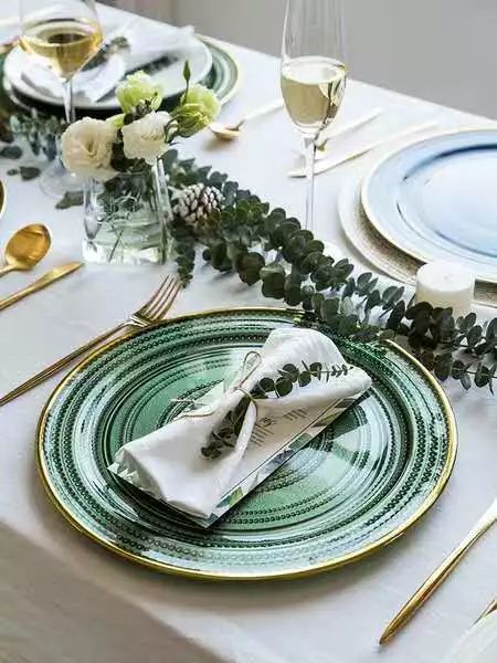 这家北欧风以纯色为主,特别推荐它的餐布,特别是绿色绒面这款,超高级~搭配金边的餐具超好看,雾蓝色的餐布非常百搭,只要不搭配雾蓝色餐具就行嘻嘻~