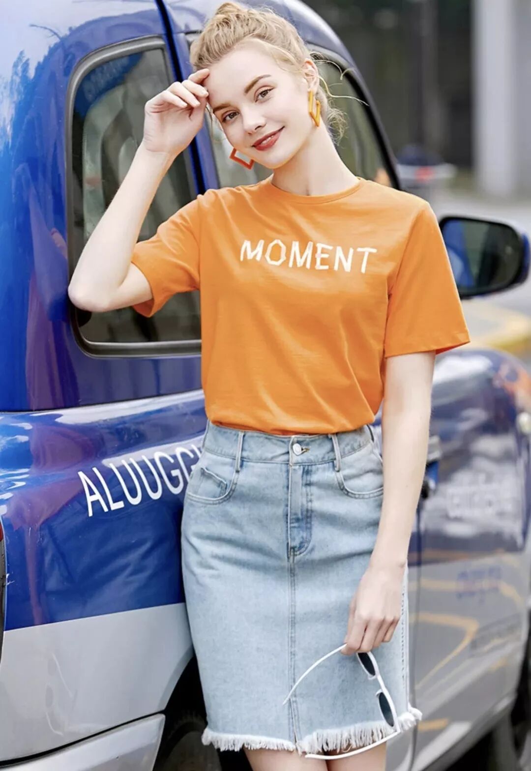 夏旬一抹清爽橙,一款橙色短T,特别适合夏天滴颜色,像夏日里的一杯橙子汽水,亮眼超显白!!太好看辣!▼