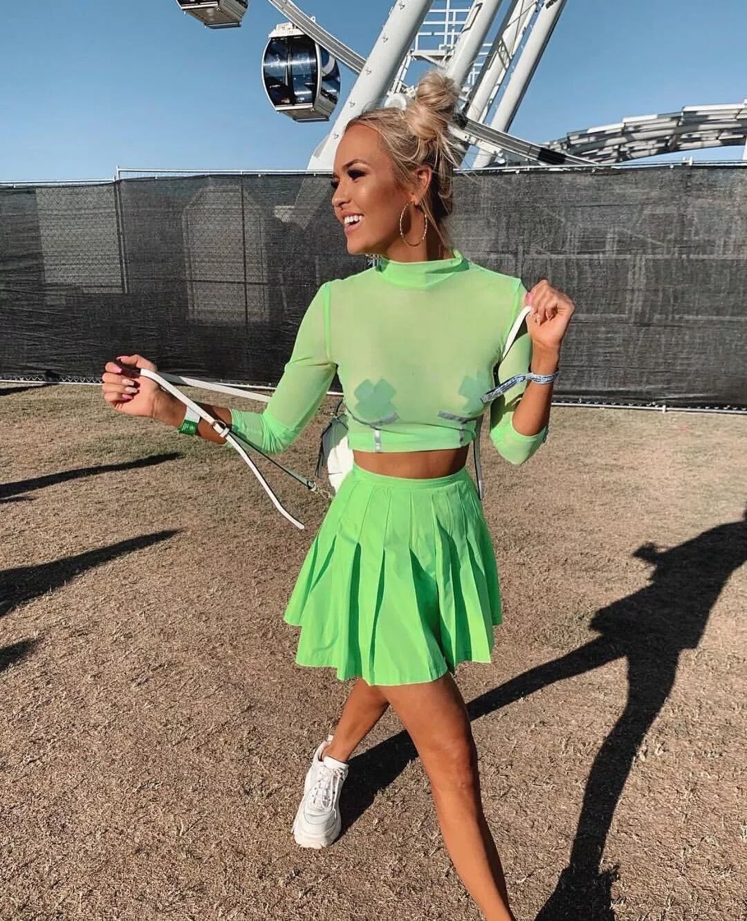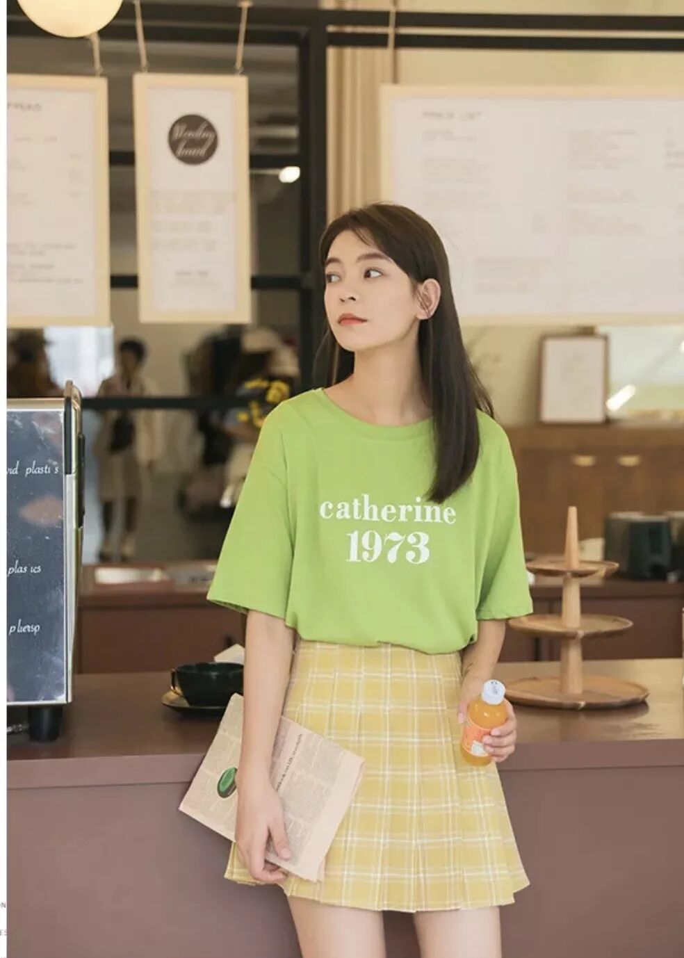 ▼薄荷绿短T搭配高腰半身裙,温柔元气,在显白力度上薄荷绿没有其他绿色力度高,白皮肤的妹子可以任性穿ok~
