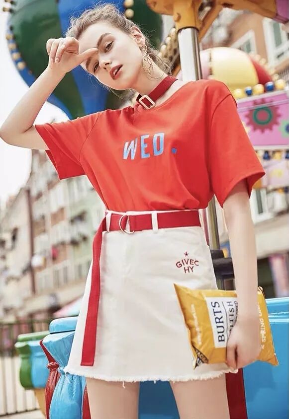 ▼对于女孩子来说,网纱裙的轻盈材质有着仙气,搭配红色T恤,很显身材,清爽活泼,同时是最嗲的搭配哦~