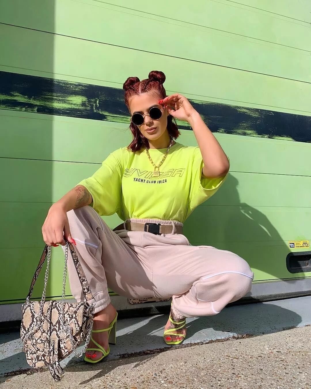 ▼橙色下衣失踪,不挑身材、不挑腿型,不挑肤色,演绎一种街头风,穿着舒适慵懒,却给人感觉酷感十足的高街潮范。