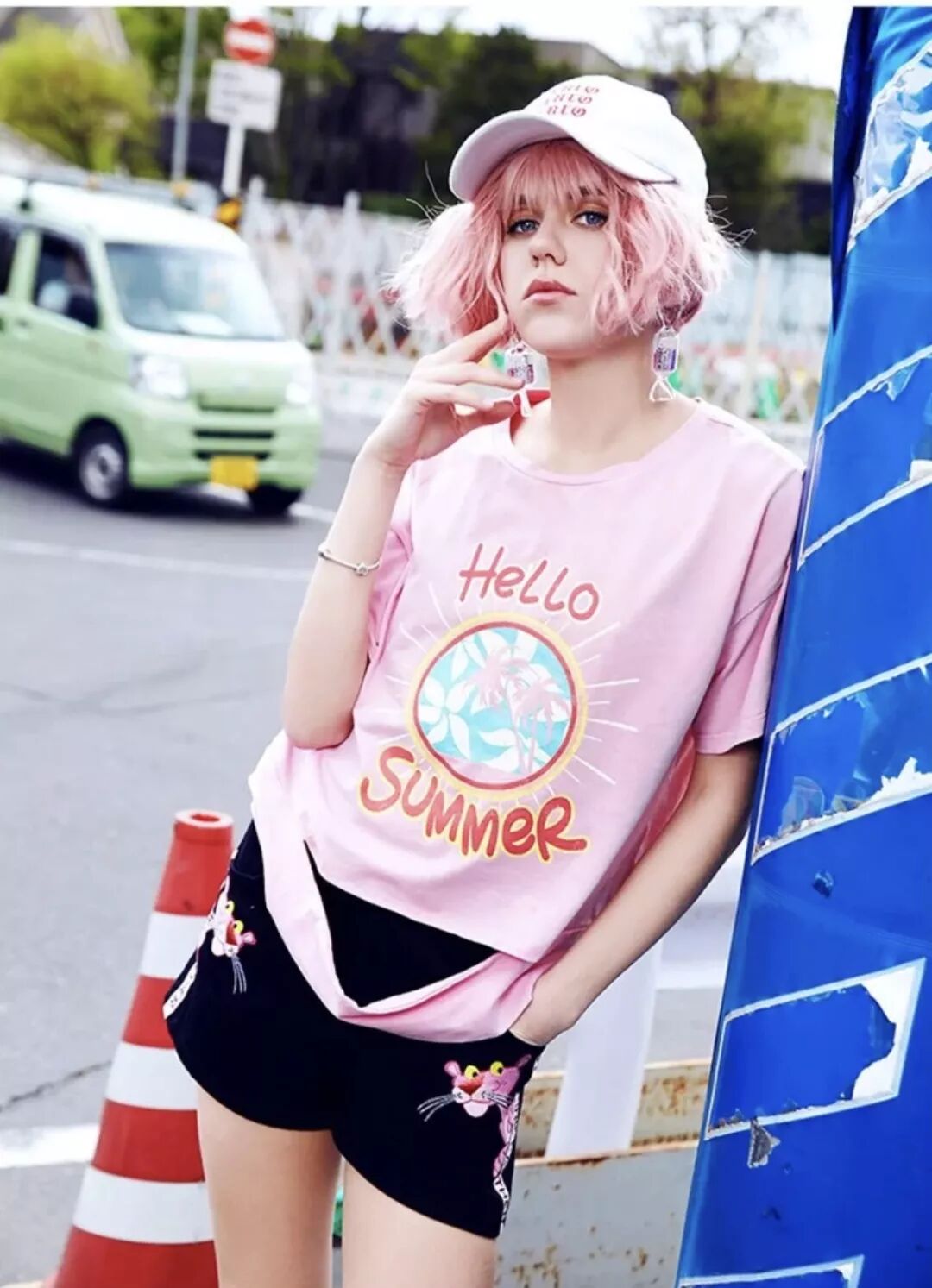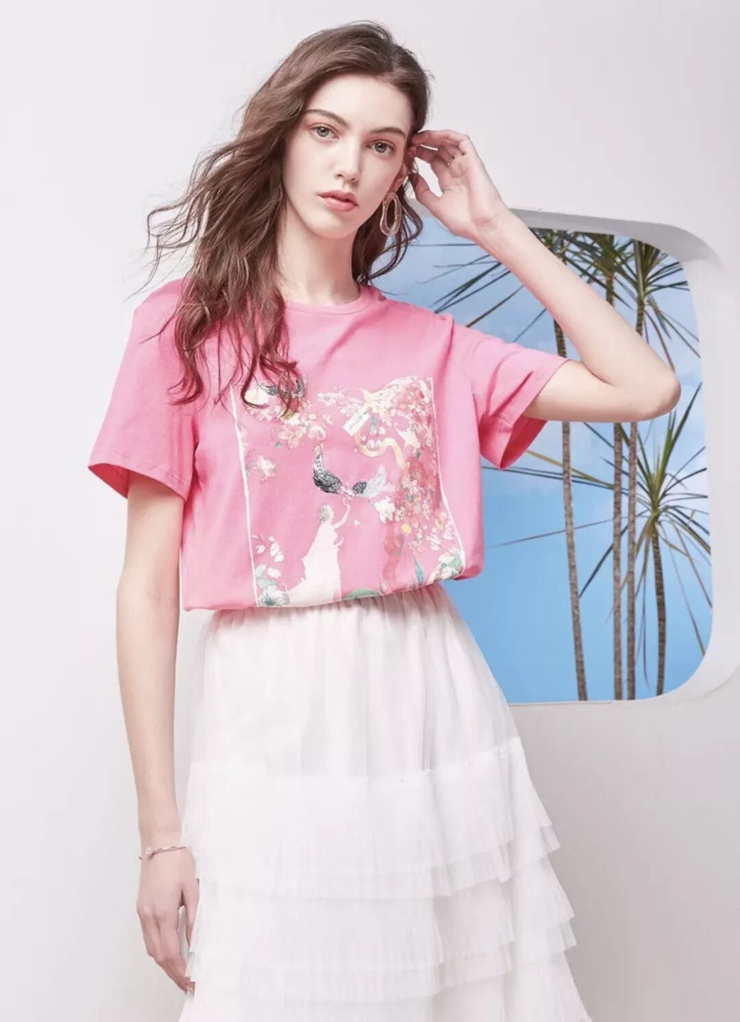 ▲“下身失踪”的粉色T恤休闲中带着俏皮,适合个性中带点又不缺少少女心的 girl~
