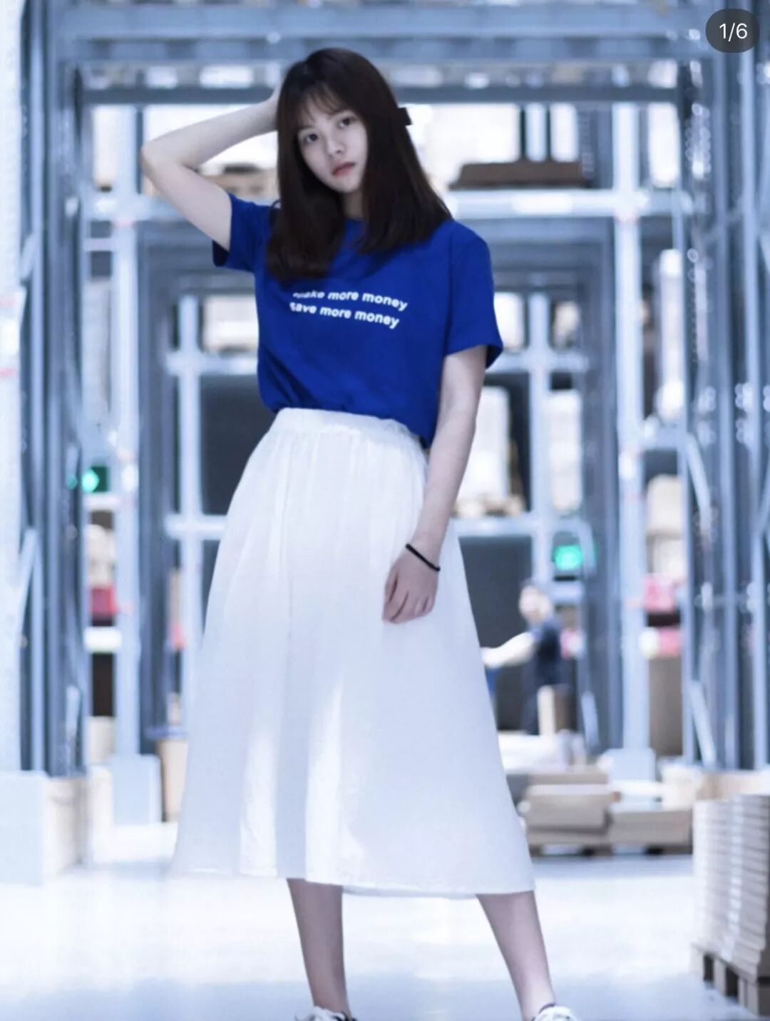 ▼海蓝色搭配白色的高腰裙,简直就是温柔文静的配色,给人干干净净的初恋般的感觉,气质女孩选这个~