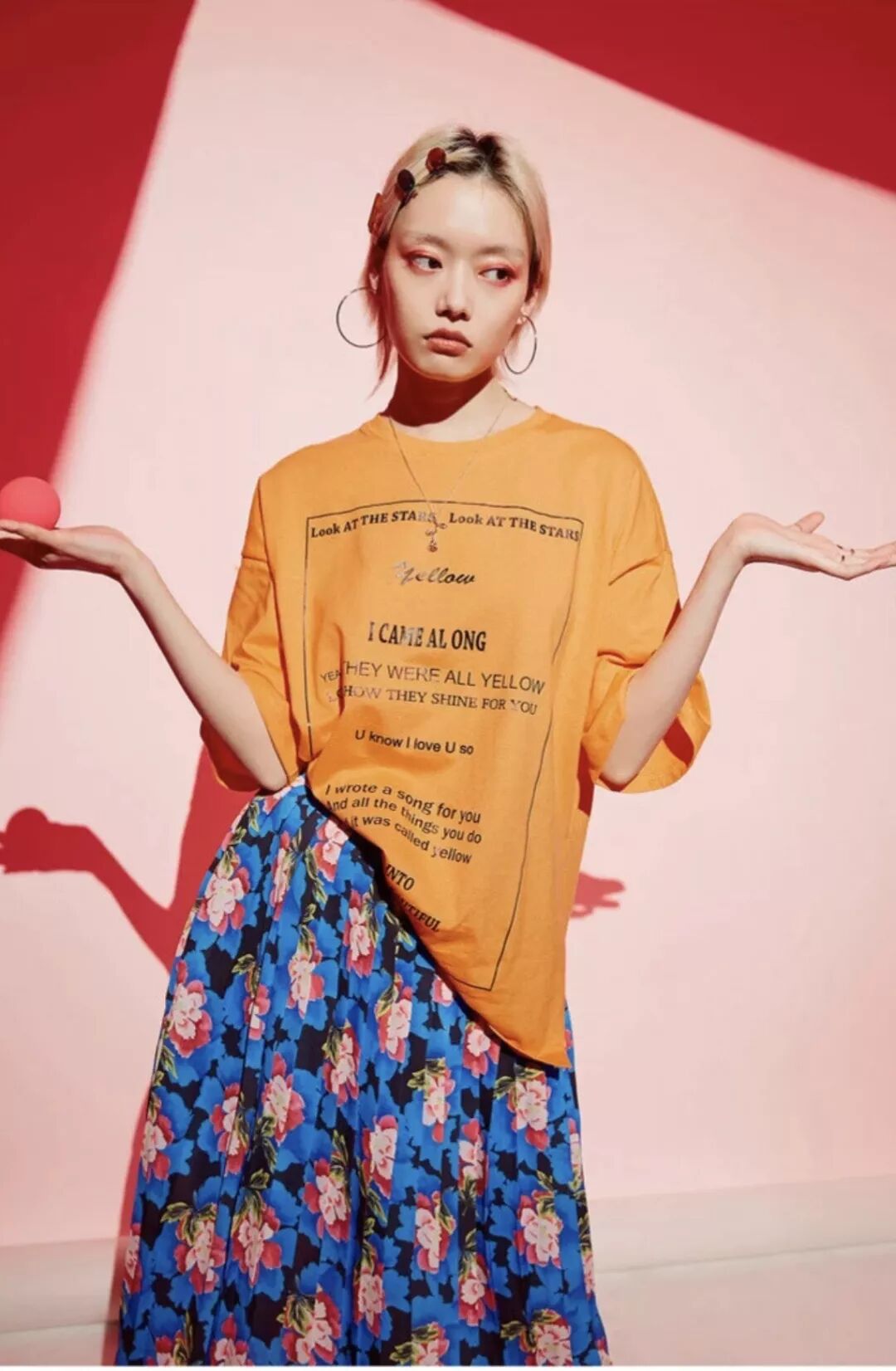 ▼这件辣椒红T恤,宽松直筒的版型上身很舒服,不会有太大的束缚感,搭配白色短裙清爽干净,而且白色短裙修饰腰部线条,适合各种身材的妹妹穿搭。