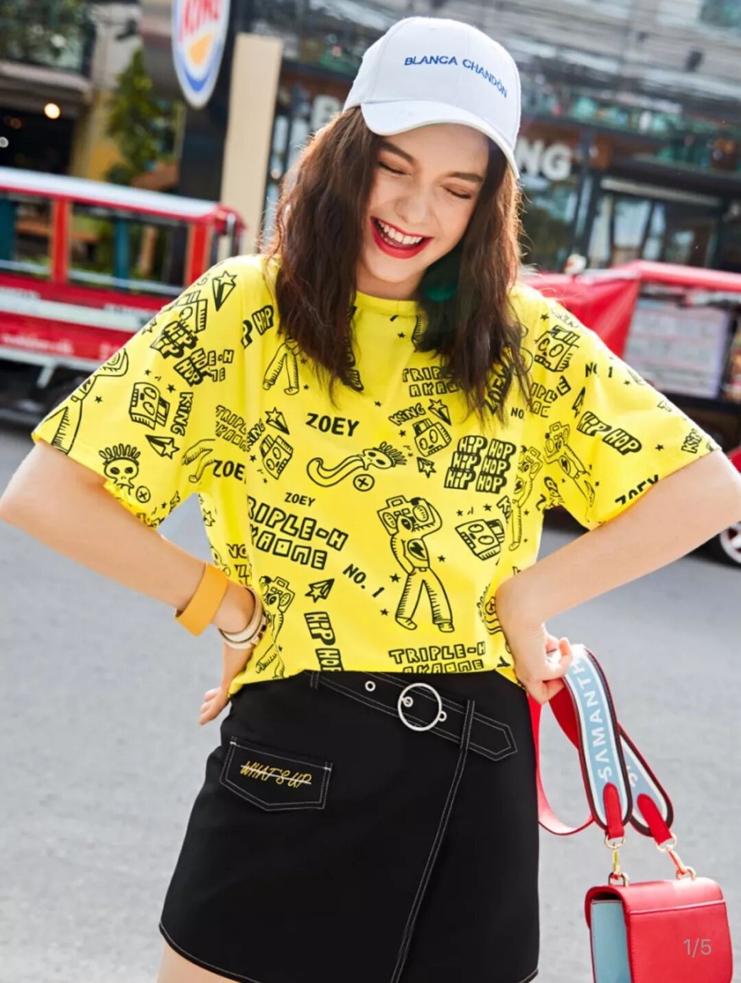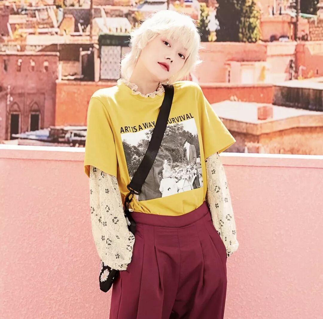 黄色T恤+蓝色牛仔裤or裙,就这样简简单单的搭配