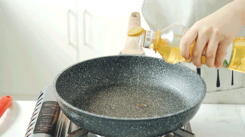 7、取一个不粘锅,倒少许玉米油,用厨房纸晕开