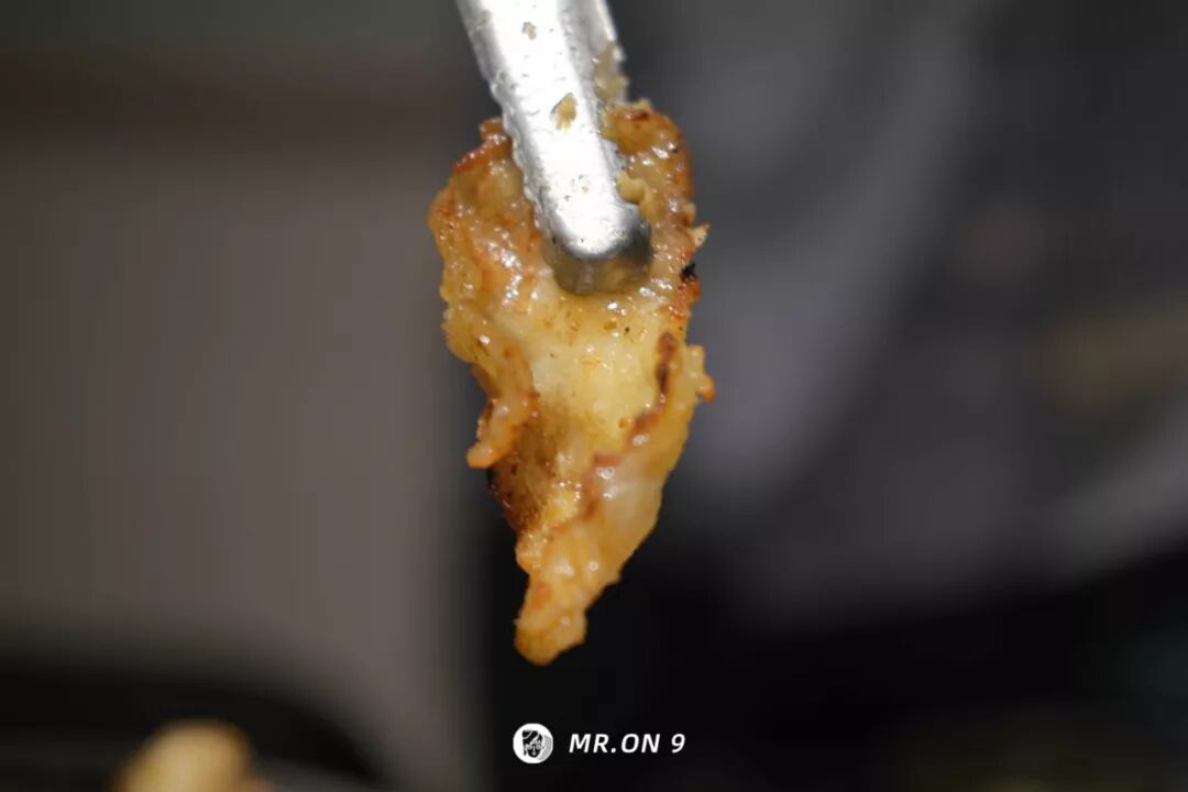 外沿焦香呈金黄色,有点像吃猪油渣的感觉。但是呢,相比起来又更薄,更脆,更爽!