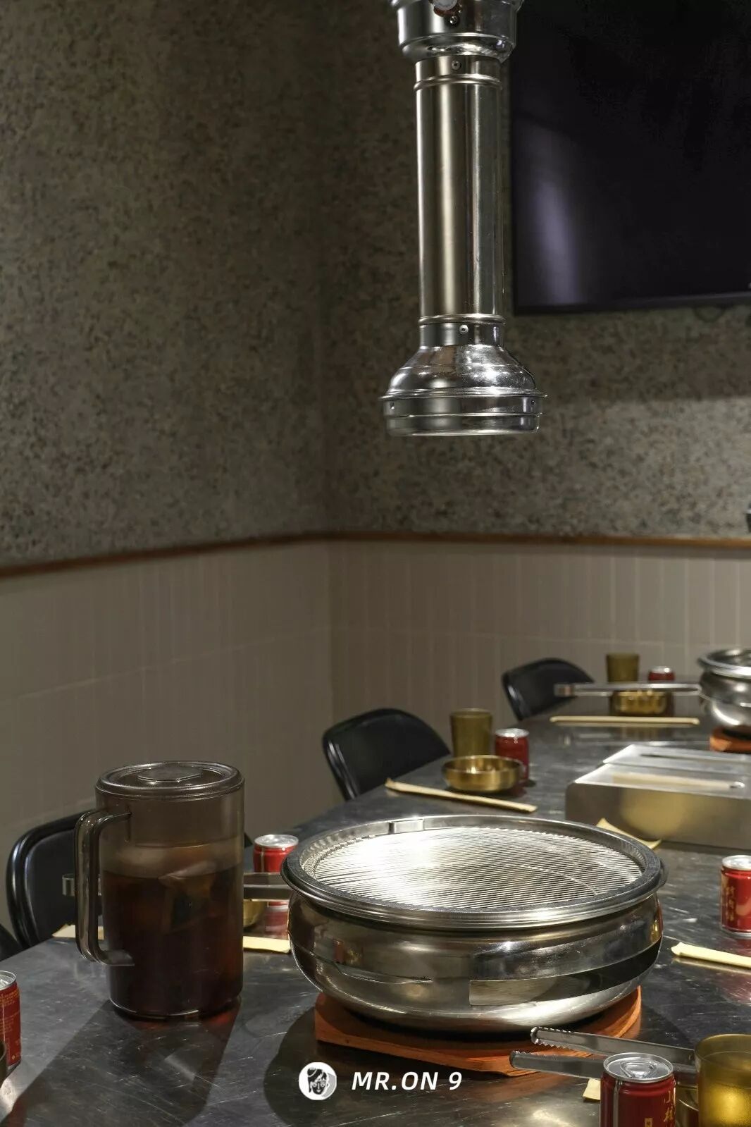 一开始我以为这家是韩国烤肉。金银两色的不锈钢元素充斥着整家店,桌面,盘子比比皆是。众人围炉而烤的时候,还真有点韩剧的滋味。