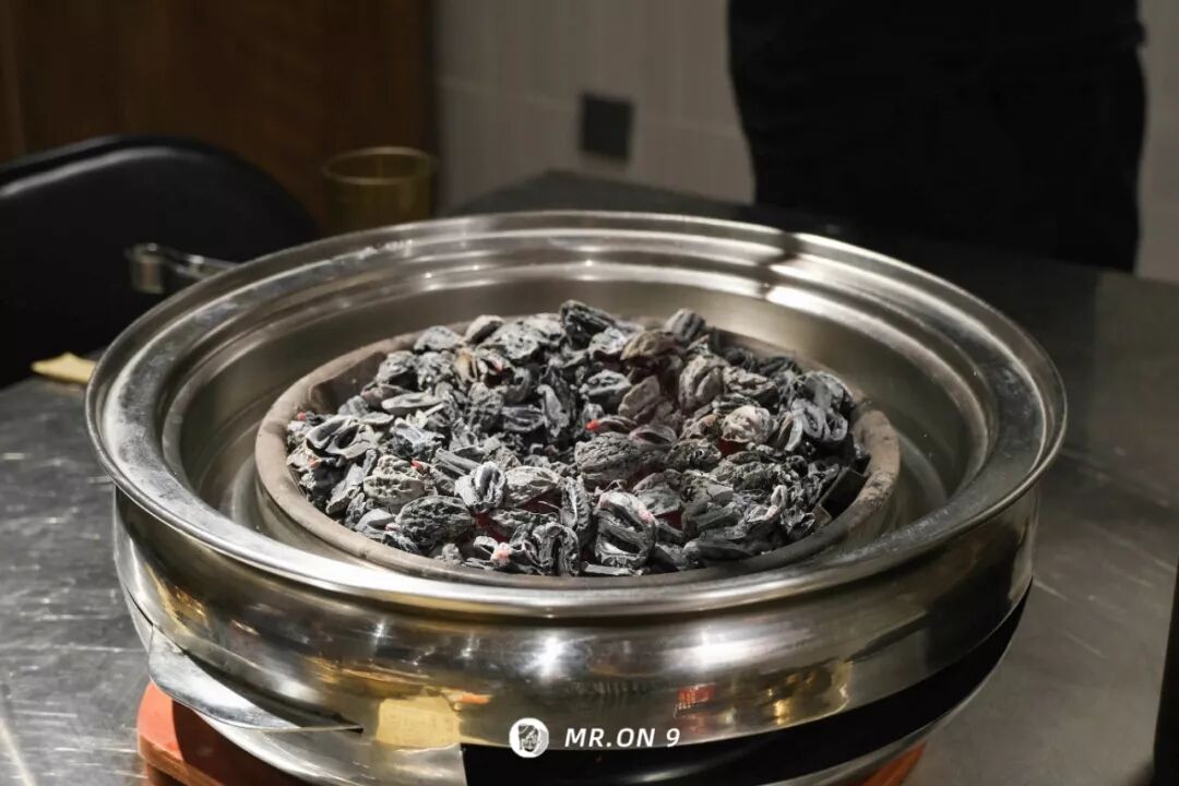 因为这家烤肉店的碳,还真就是核桃核。