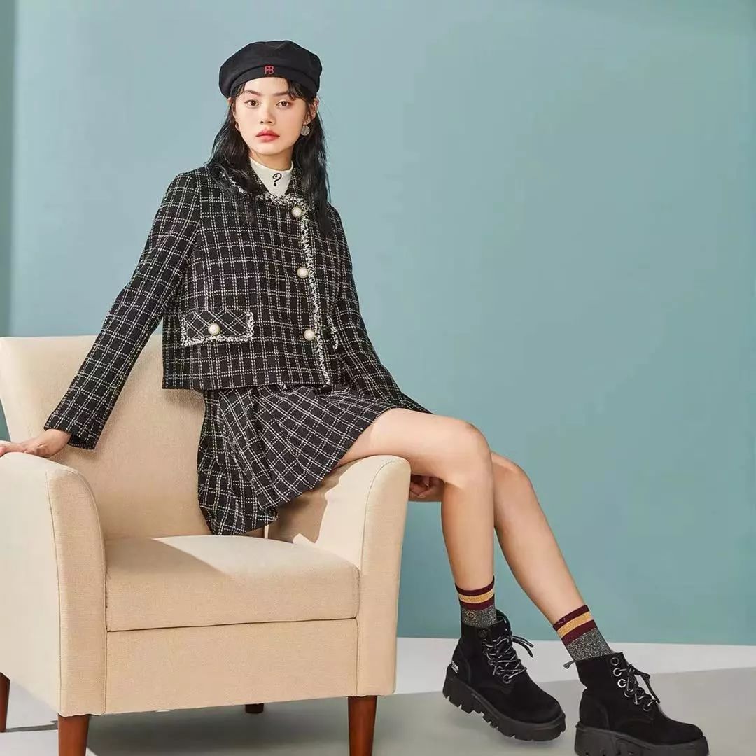 张心子 复古格纹小香风两件套$xZCgYISuUB5$ | |