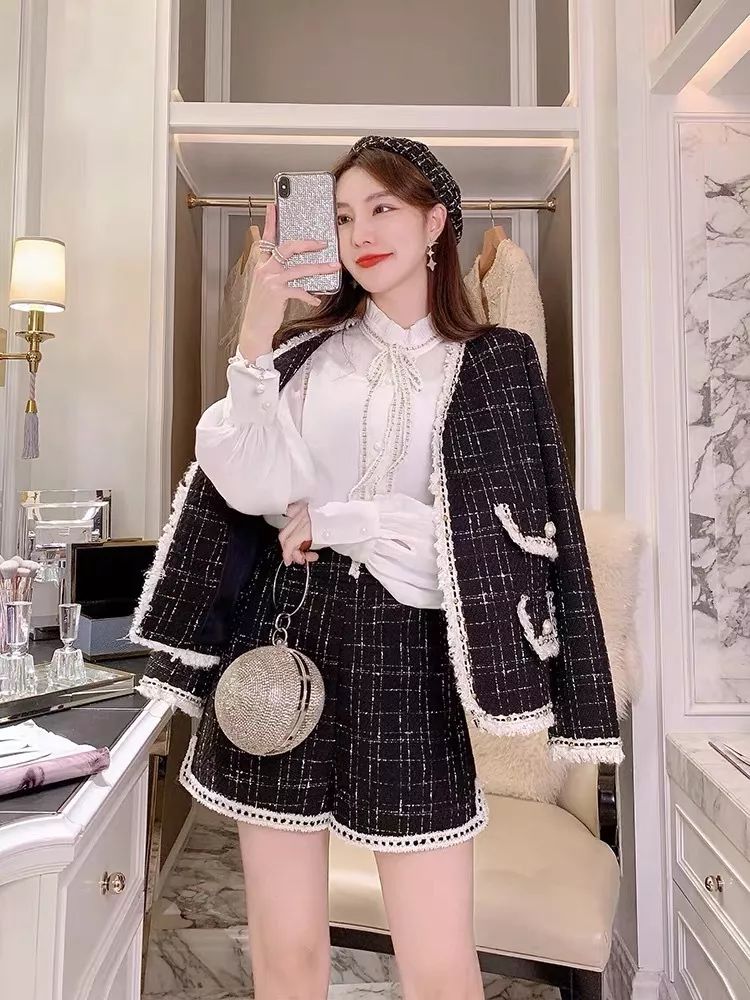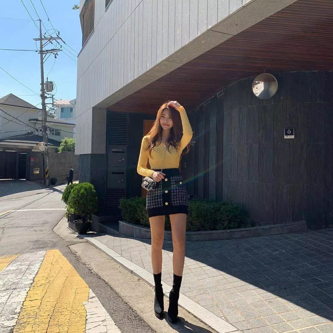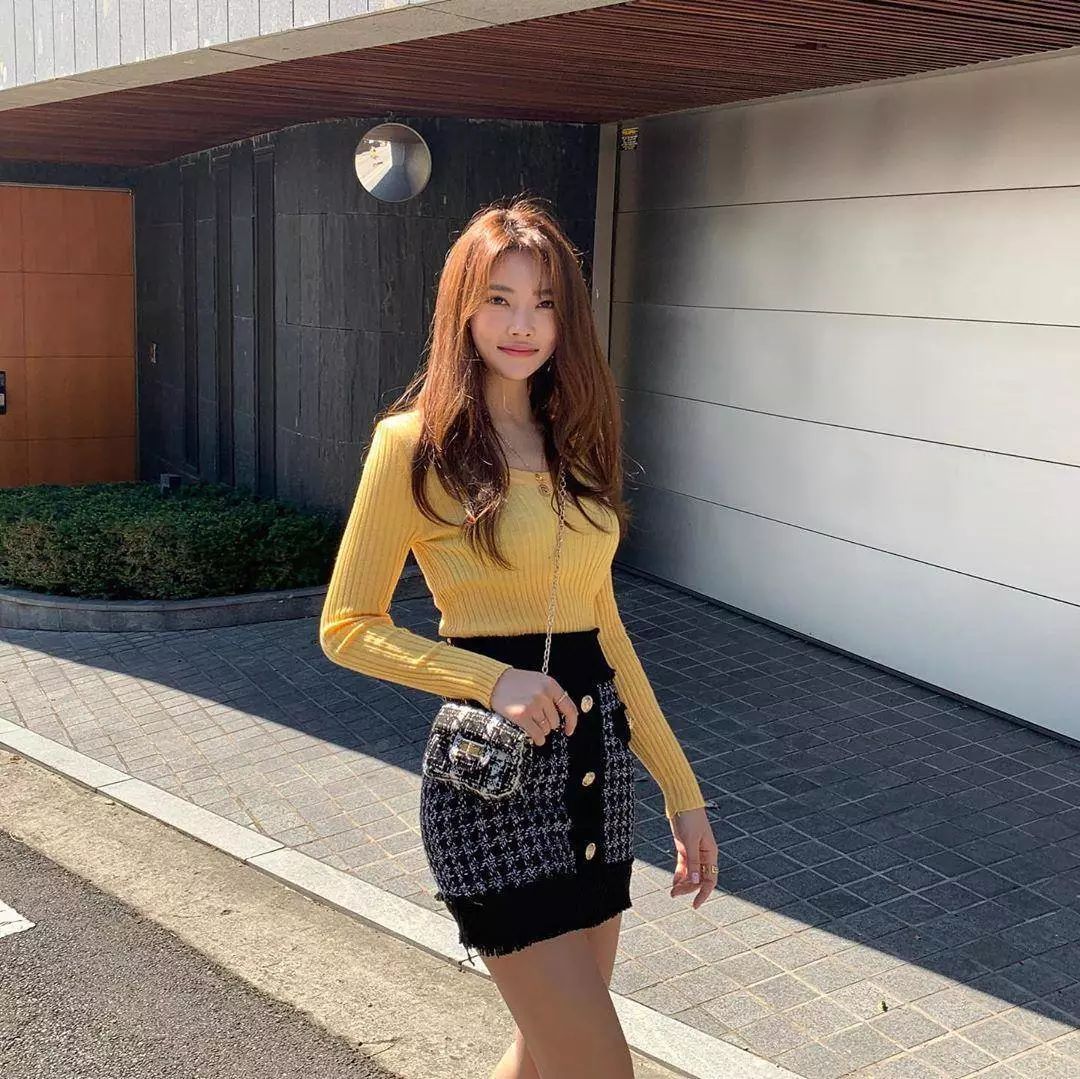 因为小香风成套穿太考验人,觉得自己驾驭不起外套的,还可以尝试一下小香风的半裙。