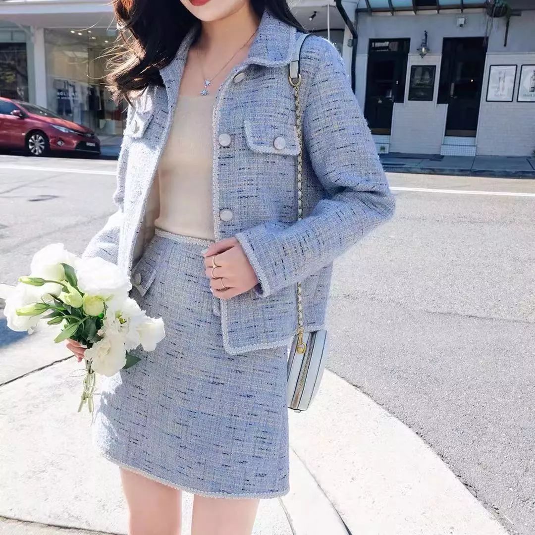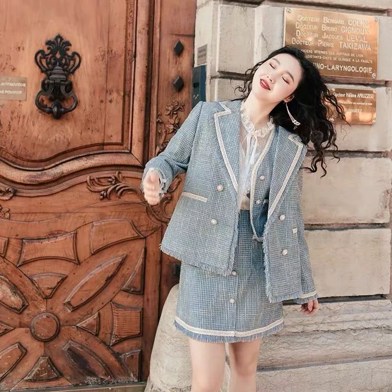 蓝色粗花呢小香风套装 $ipacYISxgiJ$ | |