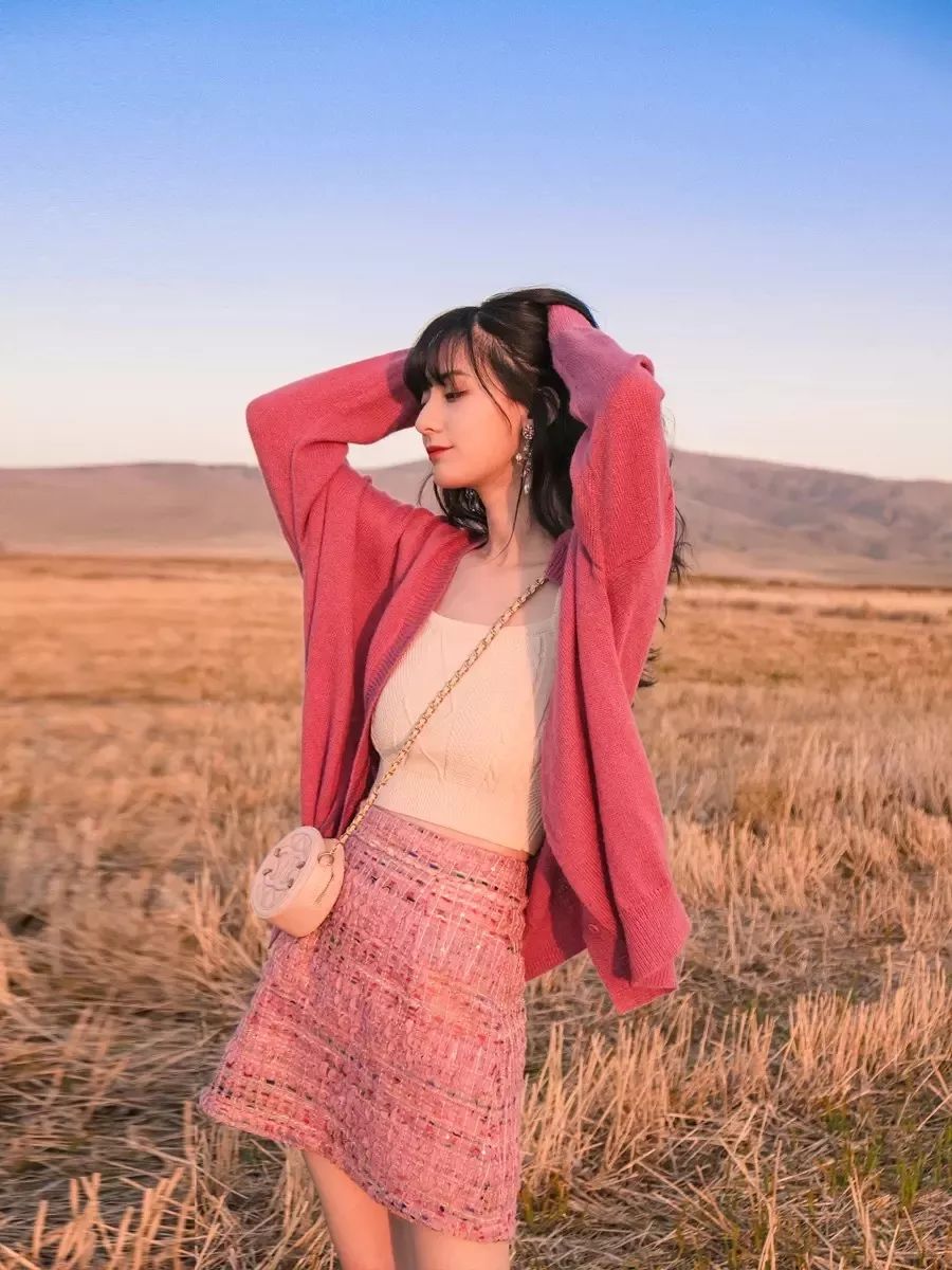 怕冷或者觉得自己腿粗的,也可以把短裙换成长的,再穿上一双打底袜,保暖性妥妥的,养生仙女秋季这样穿,绝对OK!