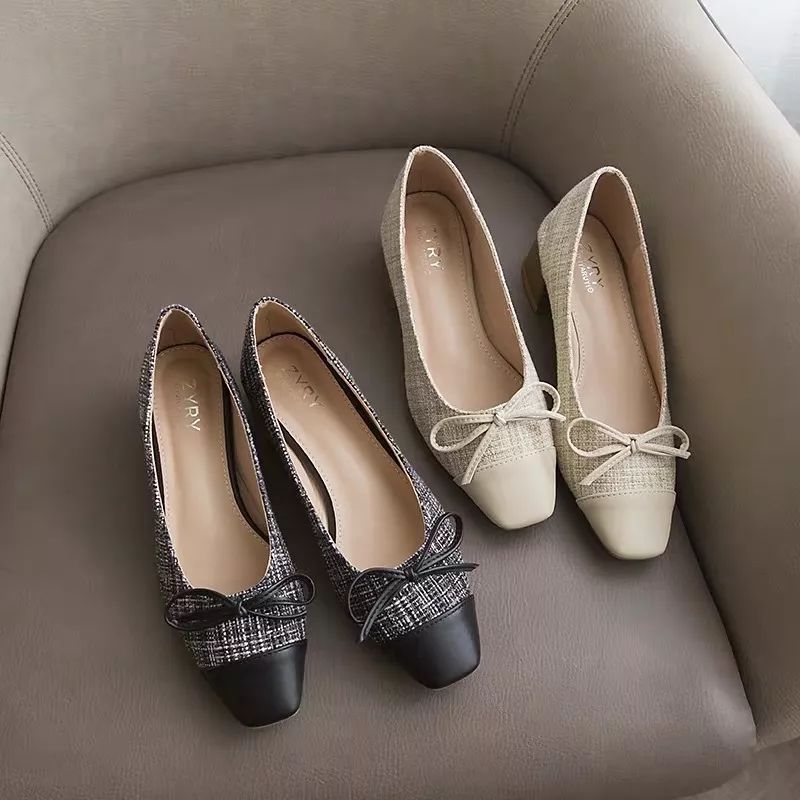 浅口单鞋不必多说,用了拼接的设计,方头的加持,大方简约。