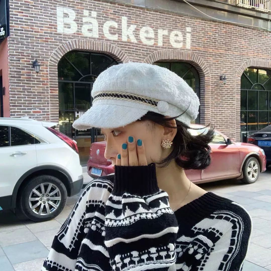 小香风粗花呢平顶海军报童帽 $5qRaYI7xNsm$ | |