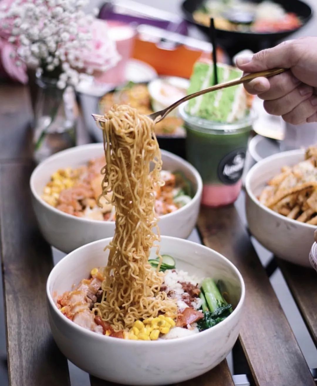 准确来说这不算cafe,从早上七点营业到晚上九点,是难得一见的勤奋餐厅。他家的炒方便面料足的跟猪肉不要钱一样,底下一层炒方便面,上面铺满一层烧肉、香肠和蔬菜。