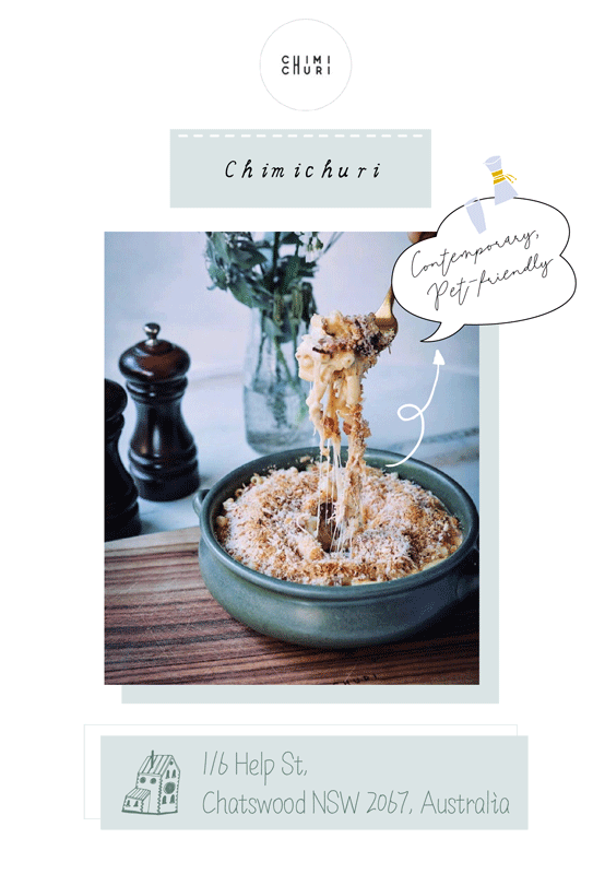 住在北边的关系,周末买菜最常去的就是chatswood,这边虽然brunch资源匮乏,但是chimichuri吃了几年都不腻: