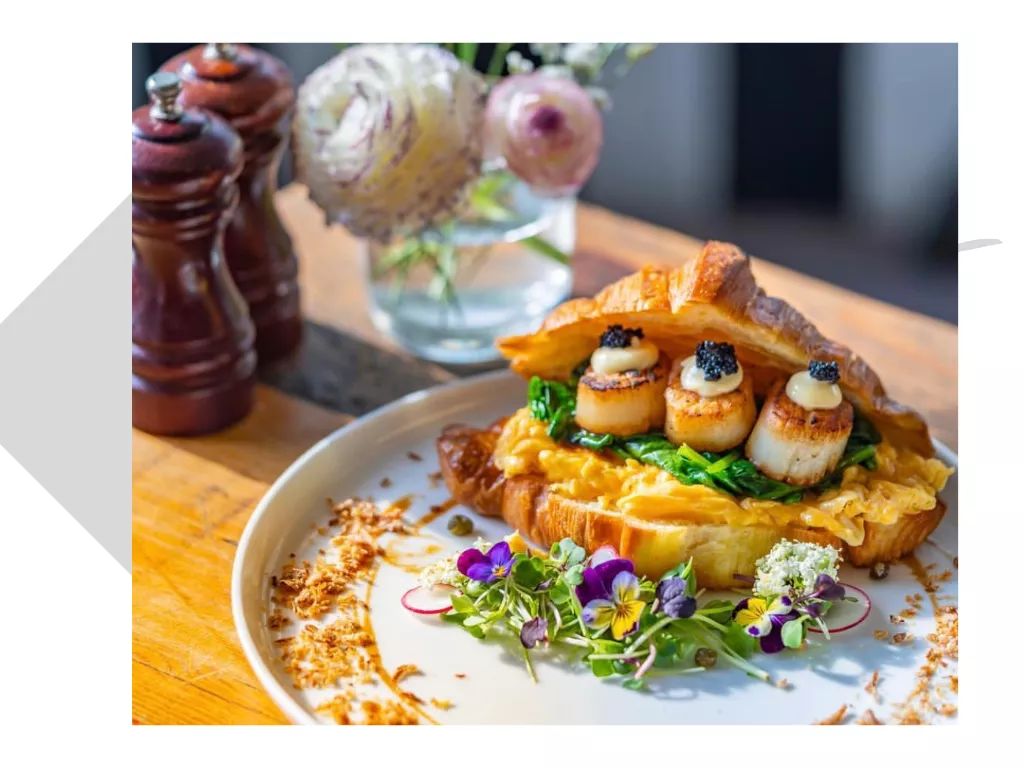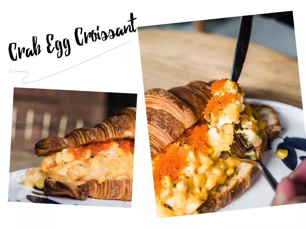 Crab Egg Croissant是摄影师当天的高光时刻,吃完觉得自己变成了好莱坞大师呢~外皮金黄酥脆,内含手撕蟹肉,嫩滑的半熟蛋,爆汁的鱼籽和甜甜的玉米粒!口感暴击!