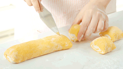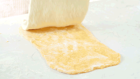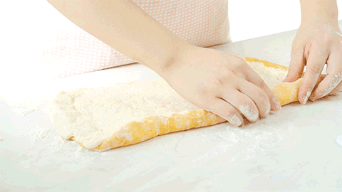 *记得撒点面粉在台上操作,这样既能防粘又可以呛粉