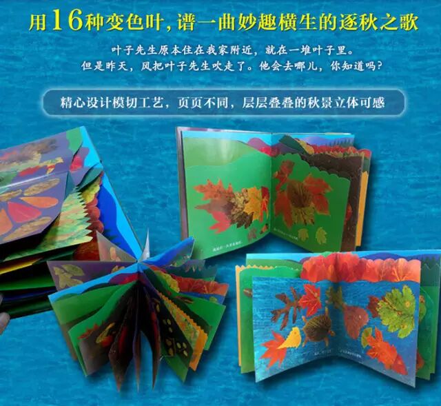 《叶子先生》获得美国国家户外图书奖、美国《儿童》杂志年度童书、《波士顿环球报》号角图书奖等多项荣誉。只有捡起落叶,才算打开秋天。用16种变色叶,谱出一曲妙趣横生的逐秋之歌。精心设计模切工艺,页页不同,层层叠叠的秋景立体可感。