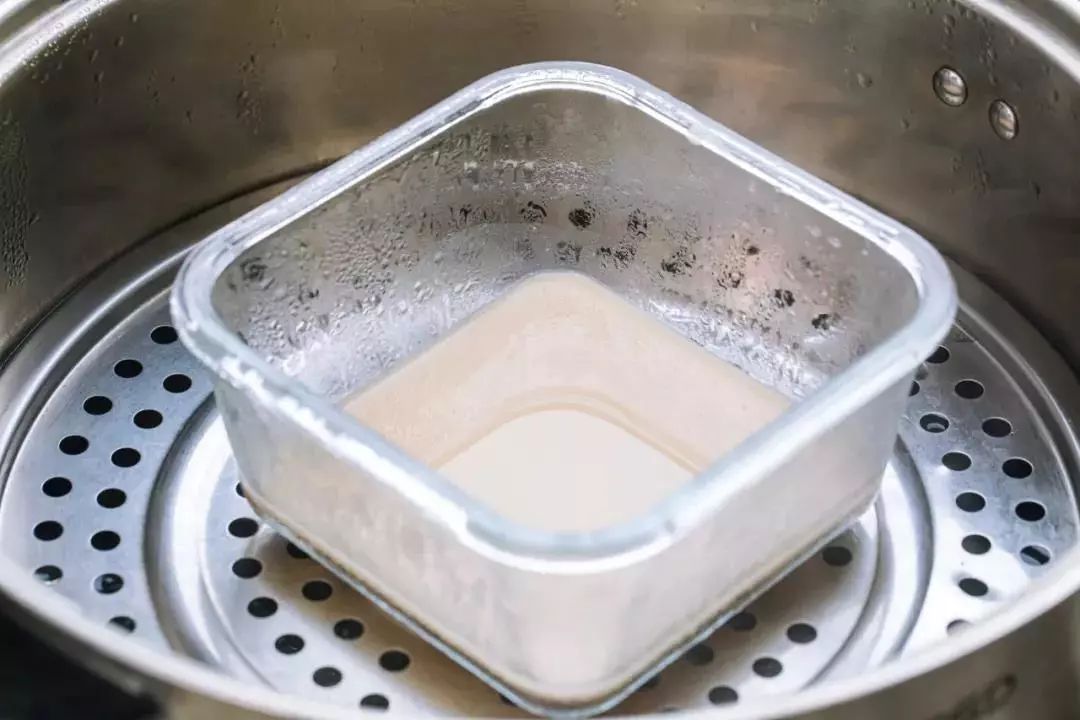 2、必须使用耐高温玻璃碗,耐高温不会破裂,玻璃碗便于观察粉浆高度和是否蒸透。