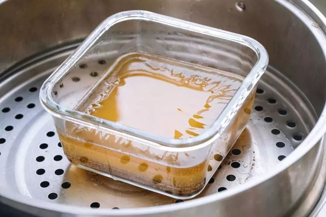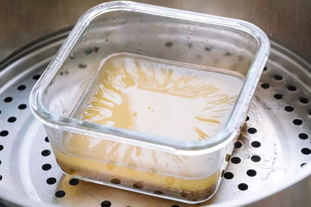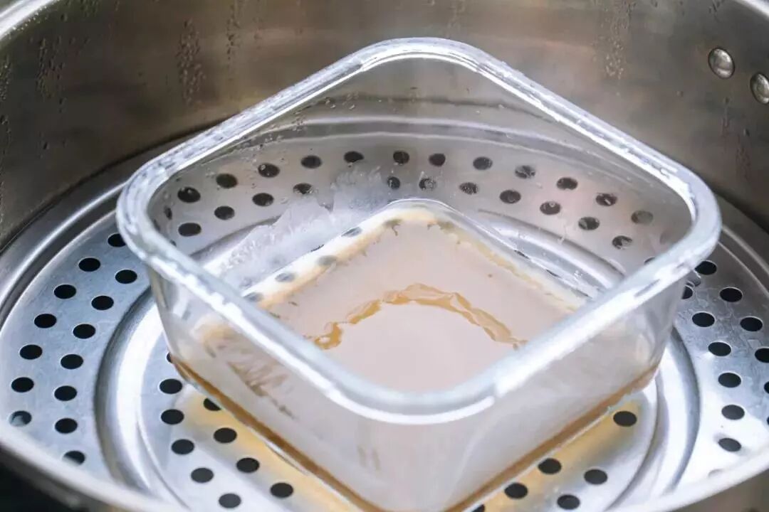 14. 同样用大火蒸3-5分钟,至完全凝固,呈半透明状。