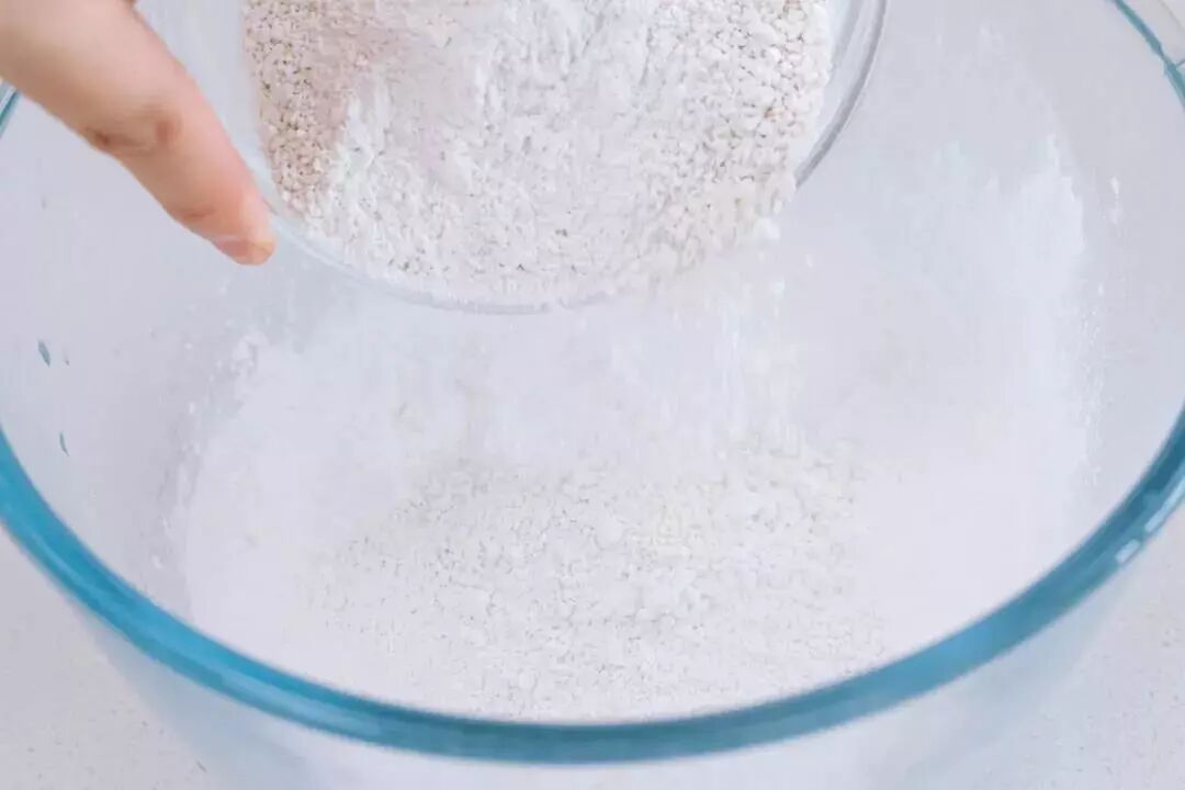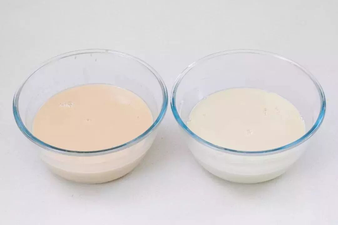 7. 用刮刀搅拌均匀成两碗粉浆。