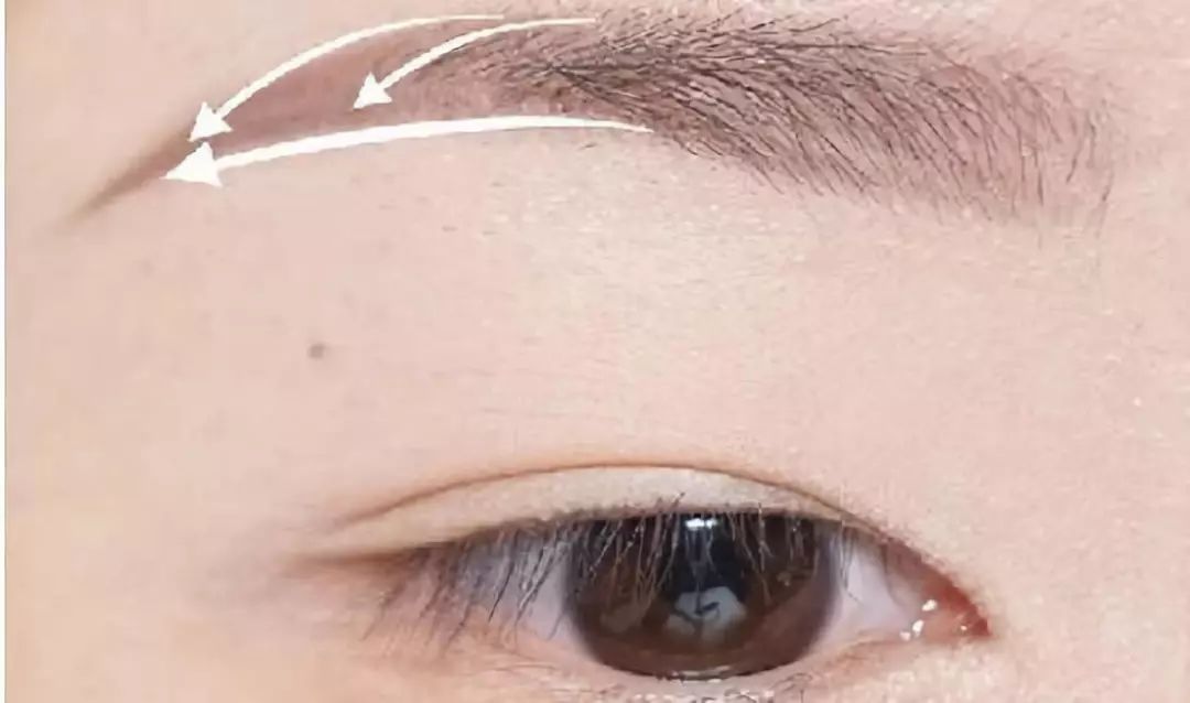 step3:再沿着眉头上方的轮廓画一条基本平直的线和眉尾连接起来,注意不要有明显的眉峰,最后整理一下填充一下眉头和眉中就可以啦~